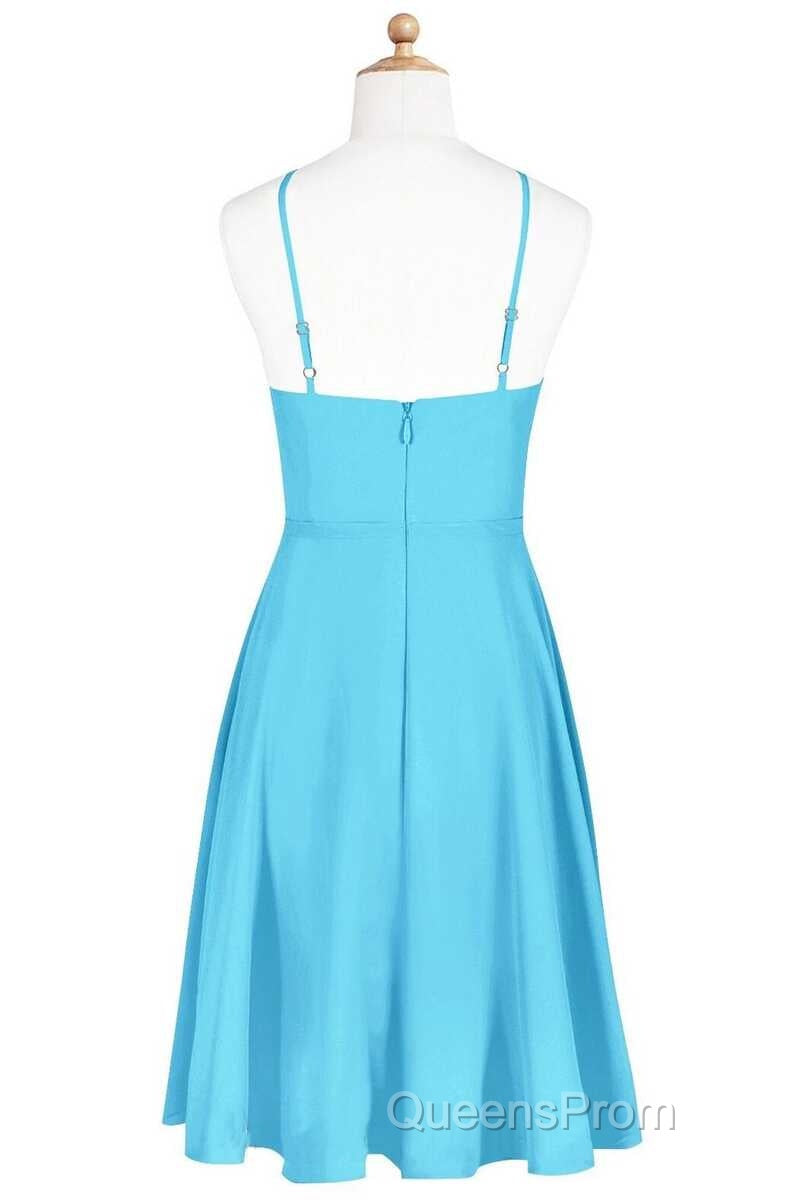 Pool Blue Chiffon Halter Short Bridesmaid Dress