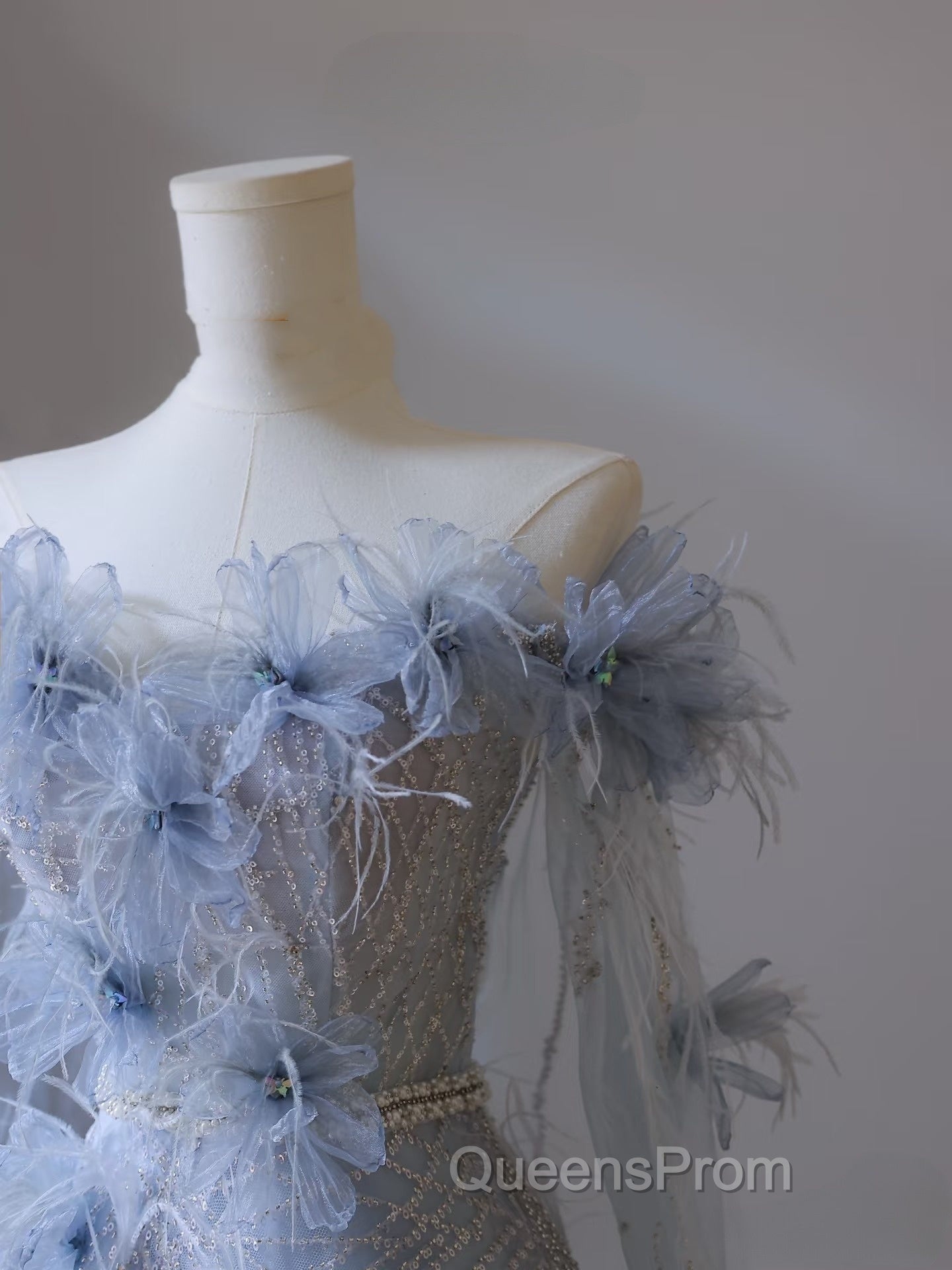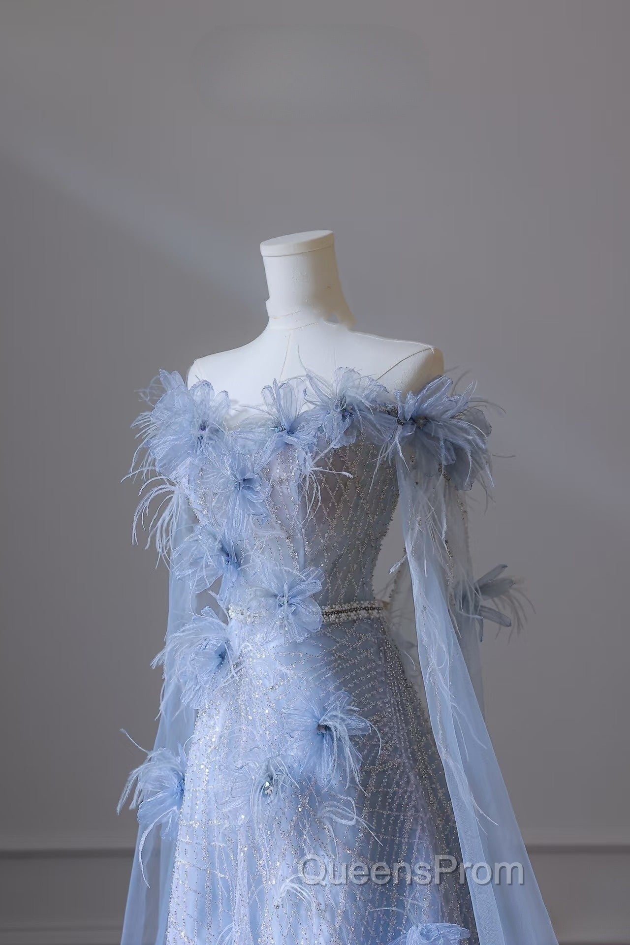 Pretty A Line Off The Shoulder Floor-Length Blue Sequin Short Sleeves Evening Dress Evening Prom Dress