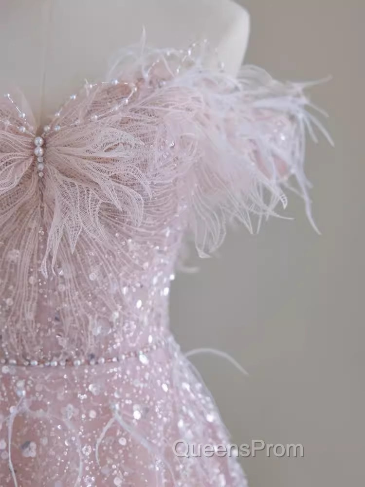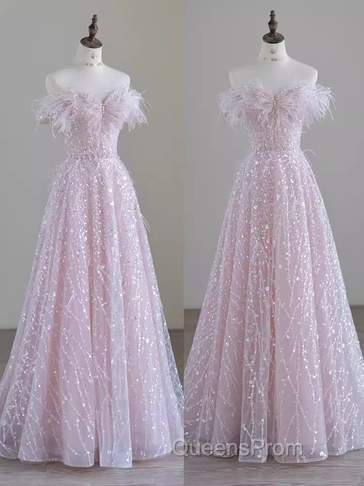 Pretty A Line Off The Shoulder Pink Sequin Long Evening Party Dress Evening Prom Dress