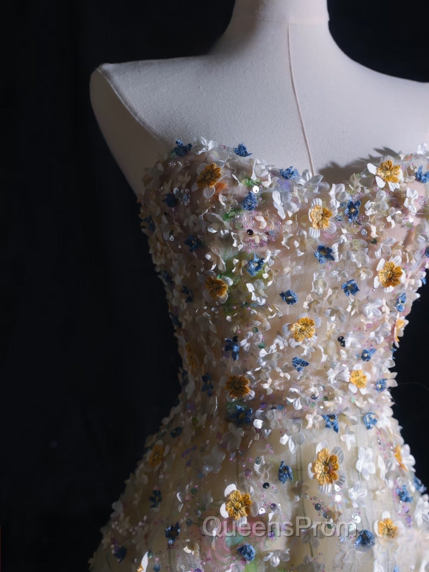 Pretty A Line Sweetheart Tulle Floral Long Evening Prom Dress Evening Gowns