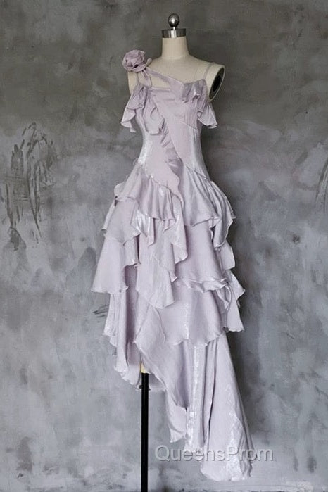 Pretty Irregular Ruffled Suspender Evening Prom Dress With Detachable Rose Long Birthday Dress For Women
