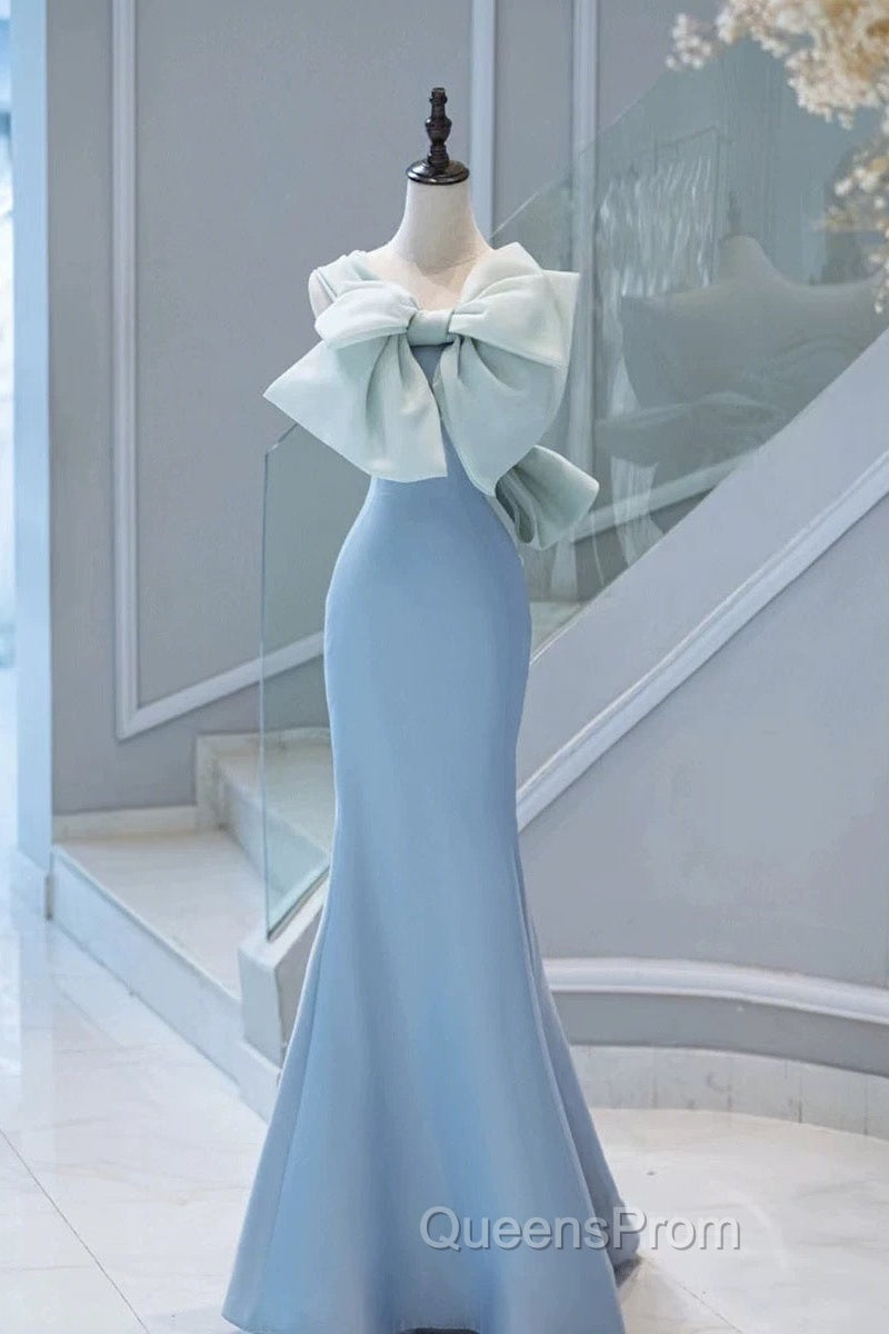 Pretty Mermaid Blue Satin Long Evening Dress Evening Prom Dress