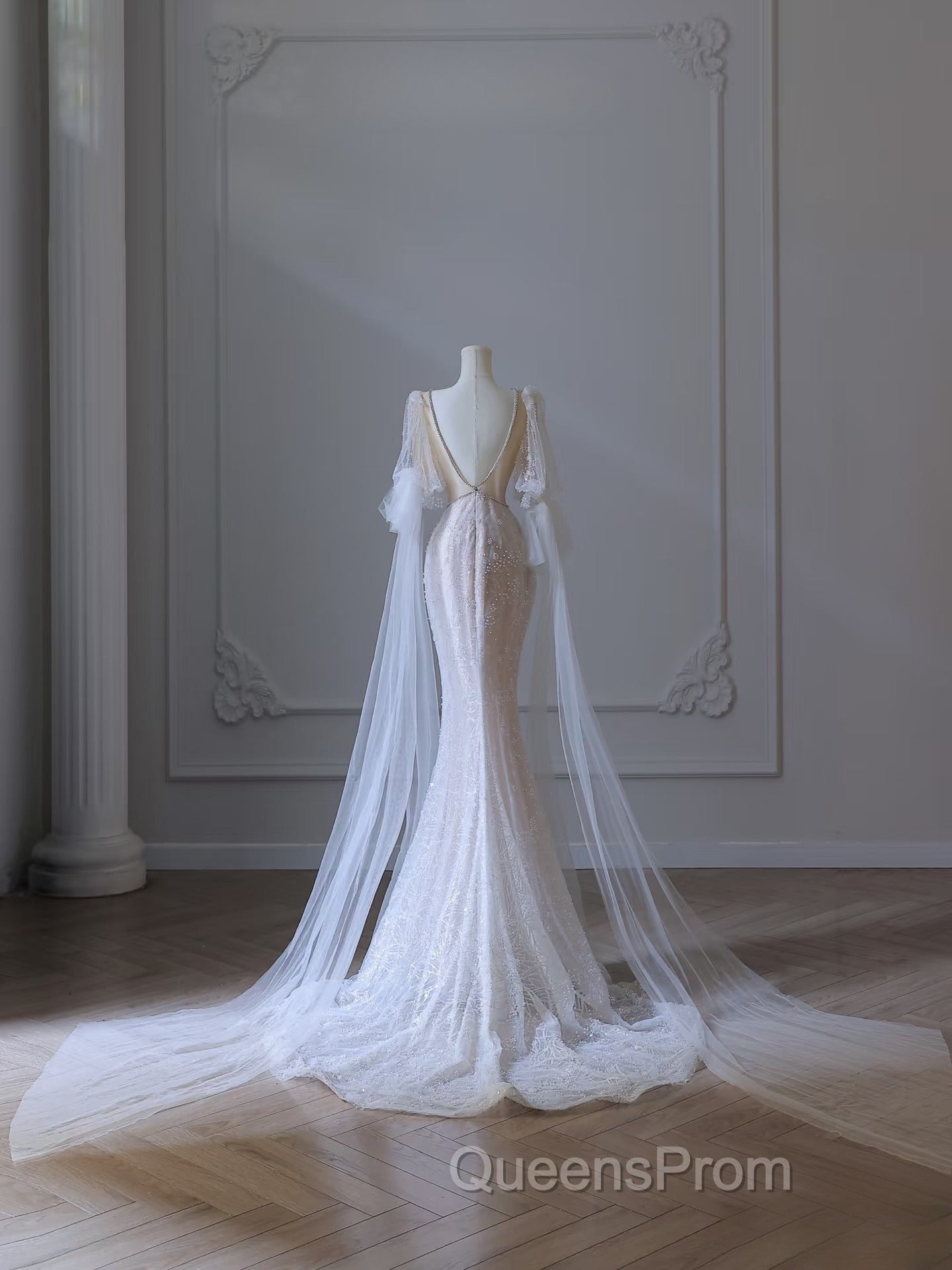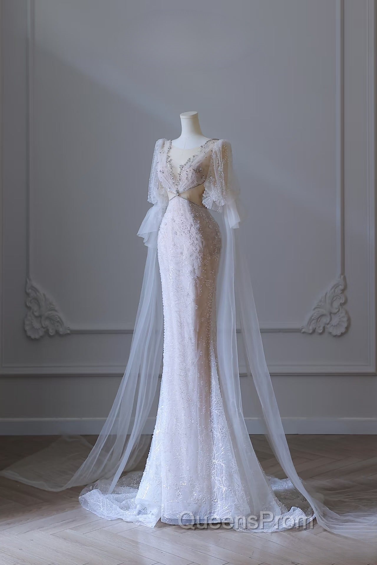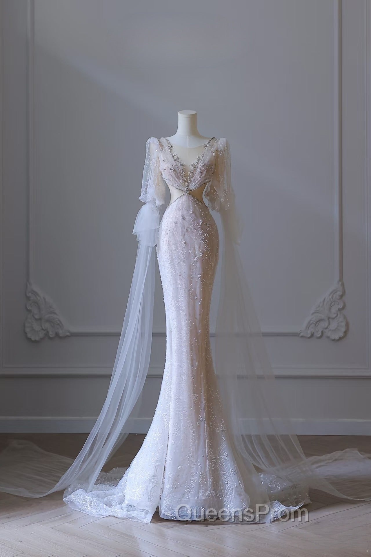 Pretty Mermaid Long Sleeves Pink Evening Prom Dress Evening Gowns