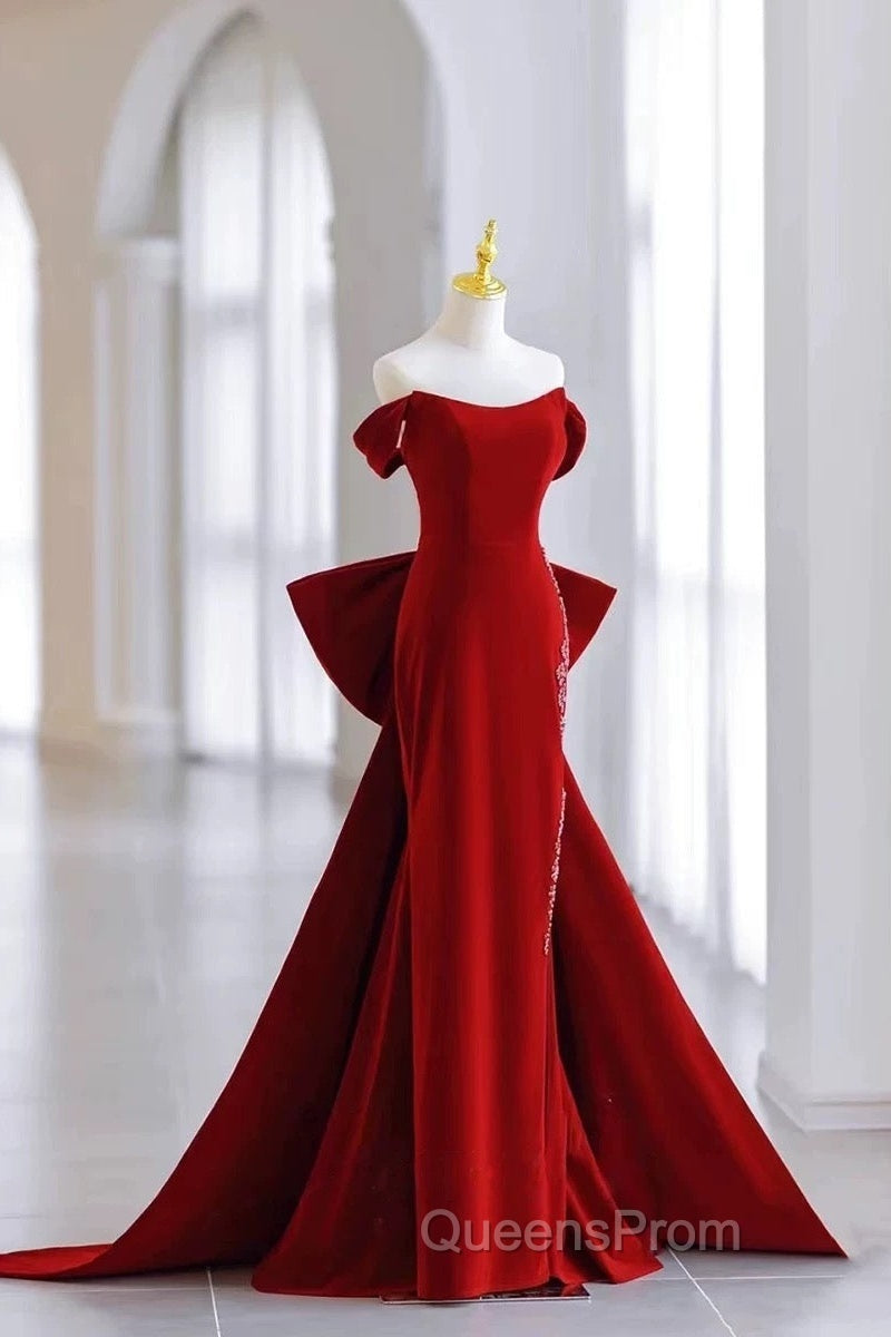 Pretty Mermaid Off The Shoulder Burgundy Satin Long Evening Dress Evening Prom Dress