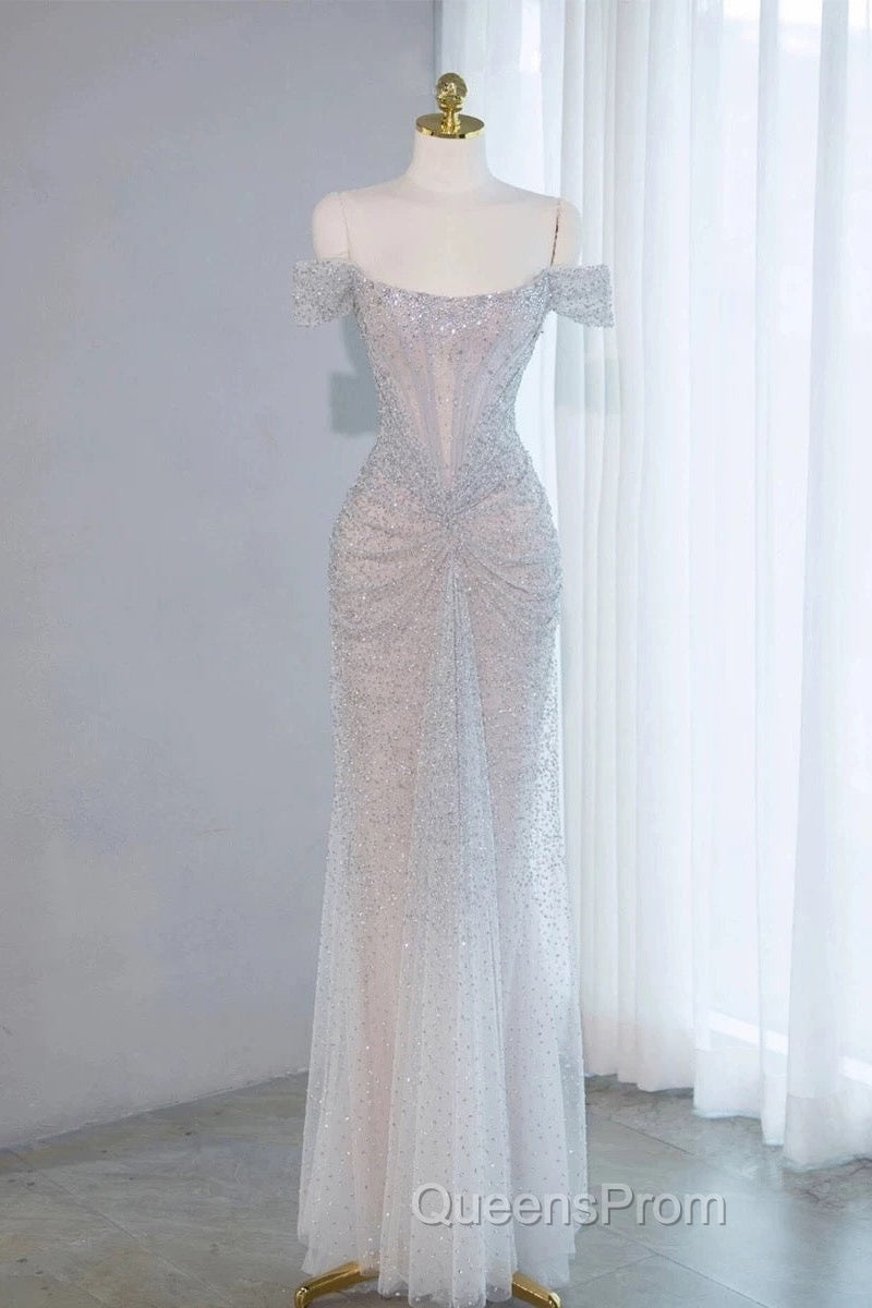 Pretty Mermaid Off The Shoulder Silver Sequin Evening Dress Evening Prom Dress