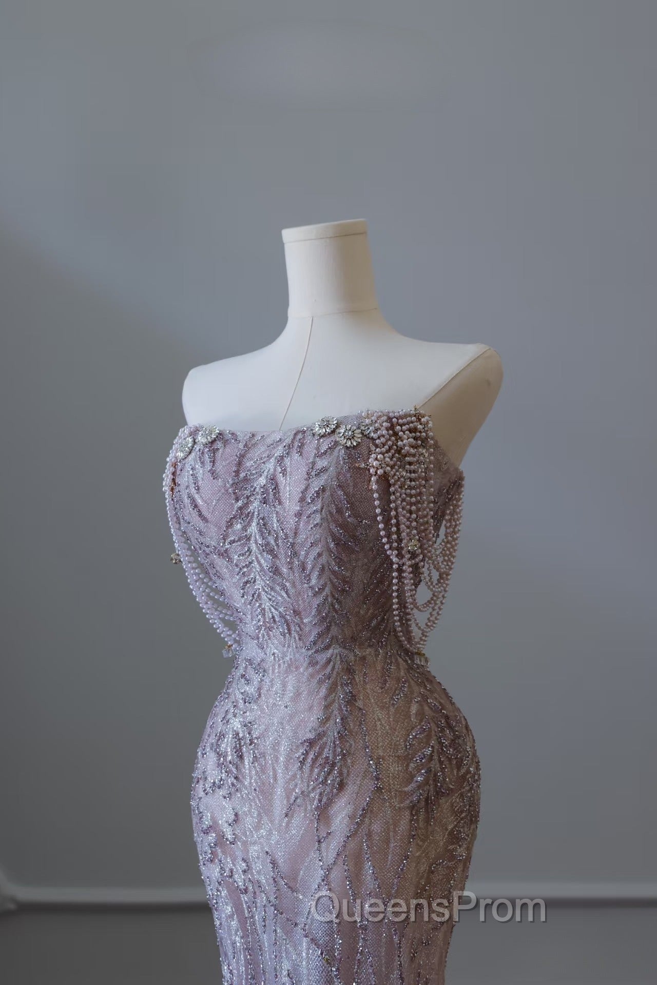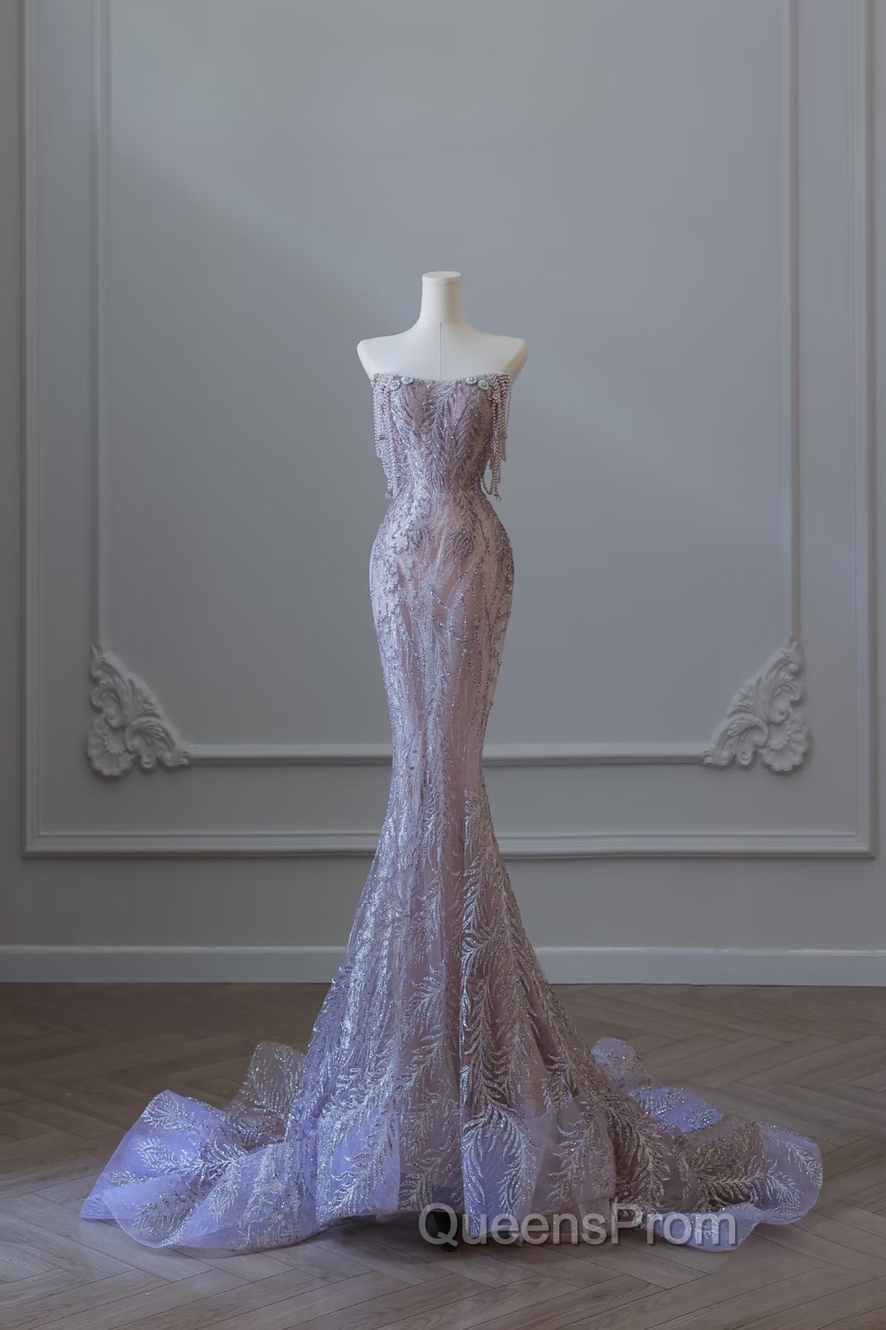 Pretty Mermaid Strapless Lilac Sequin Beads Long Evening Prom Dress Formal Evening Dress