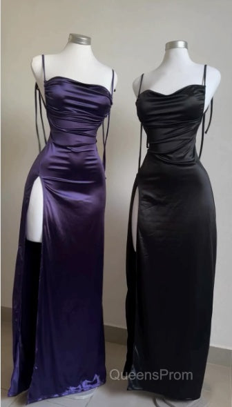 Pretty Sheath Spaghetti Straps Floor Length Ruffles Grape Slit Evening Prom Dress