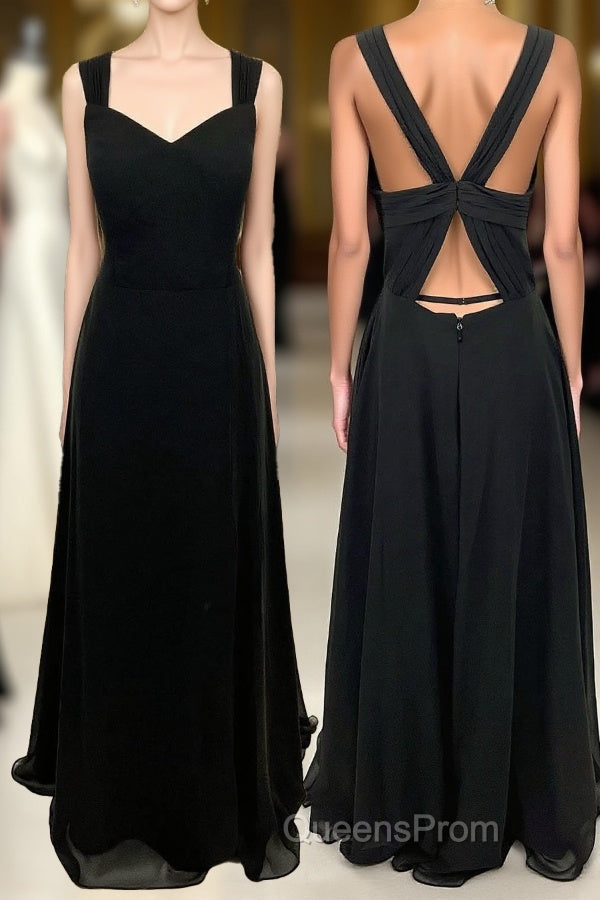 Princess Black Chiffon A-line Long Bridesmaid Dress