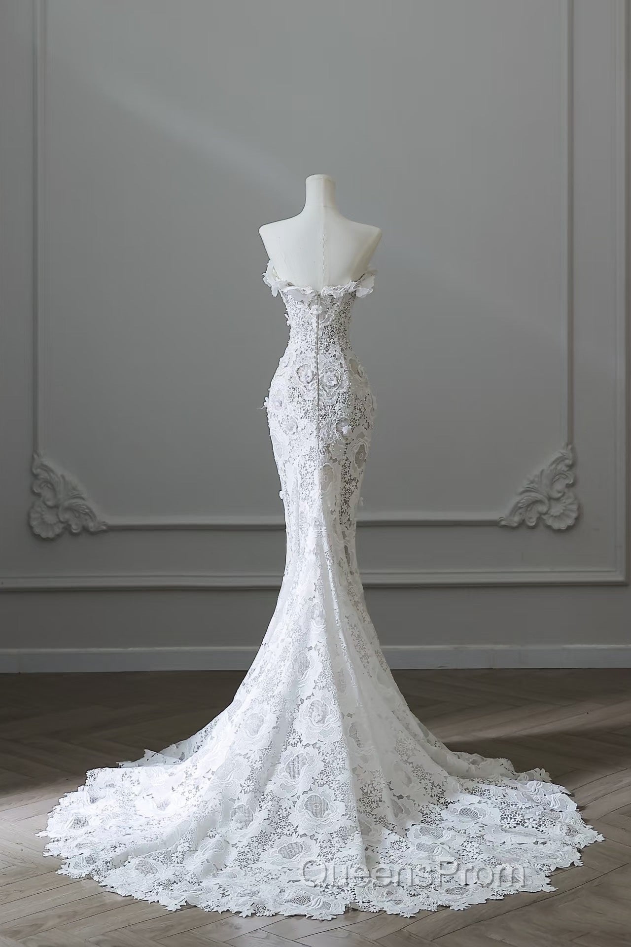 Princess Mermaid Strapless White Lace Long Wedding Dress Brides Dress