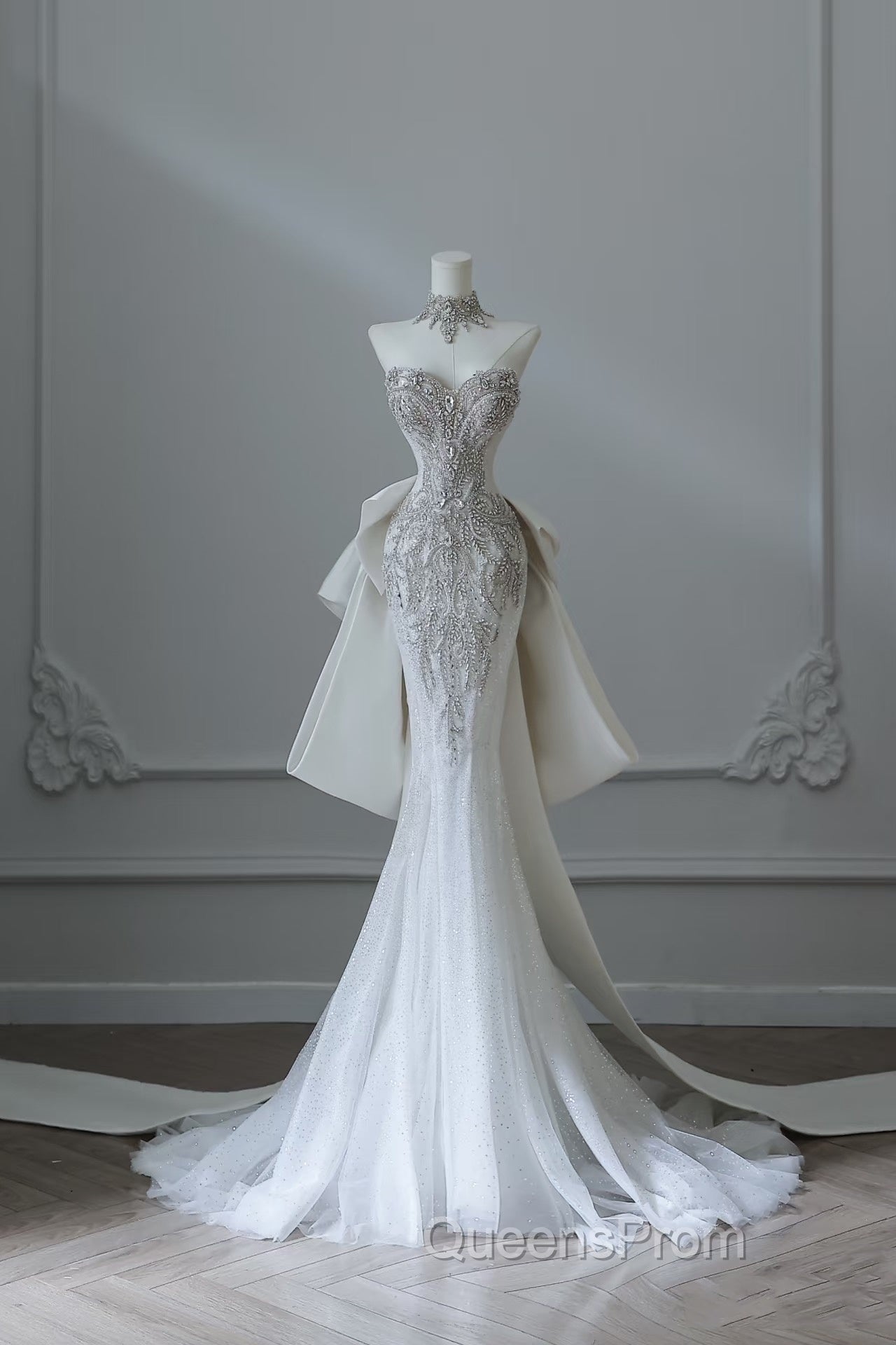 Princess Mermaid Sweetheart White Tulle Long Wedding Dress Brides Dress