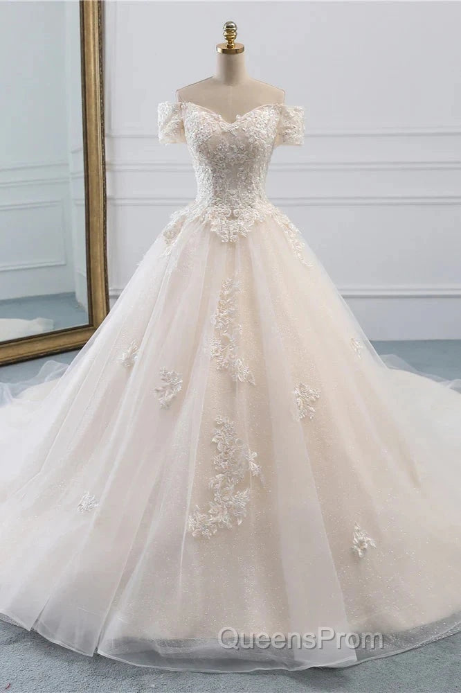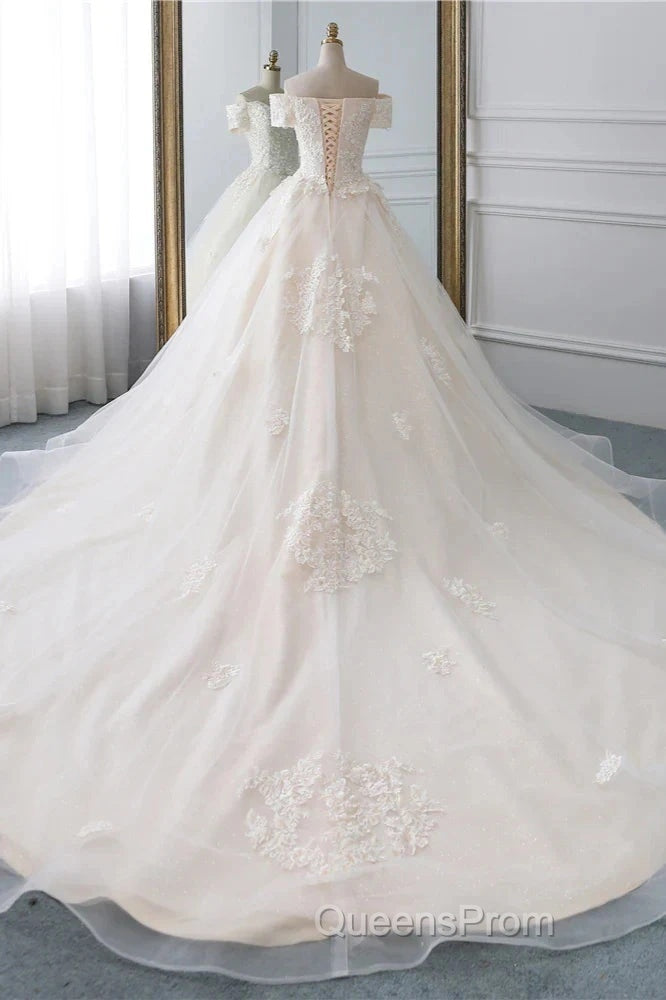 Princess Off The Shoulder Tulle Wedding Dress With Lace Appliques Elegant Beautiful