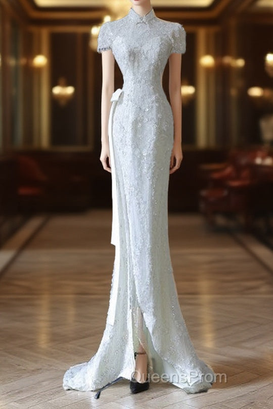 Princess Sheath High Neckline White Sequin Long Wedding Dress Brides Dress