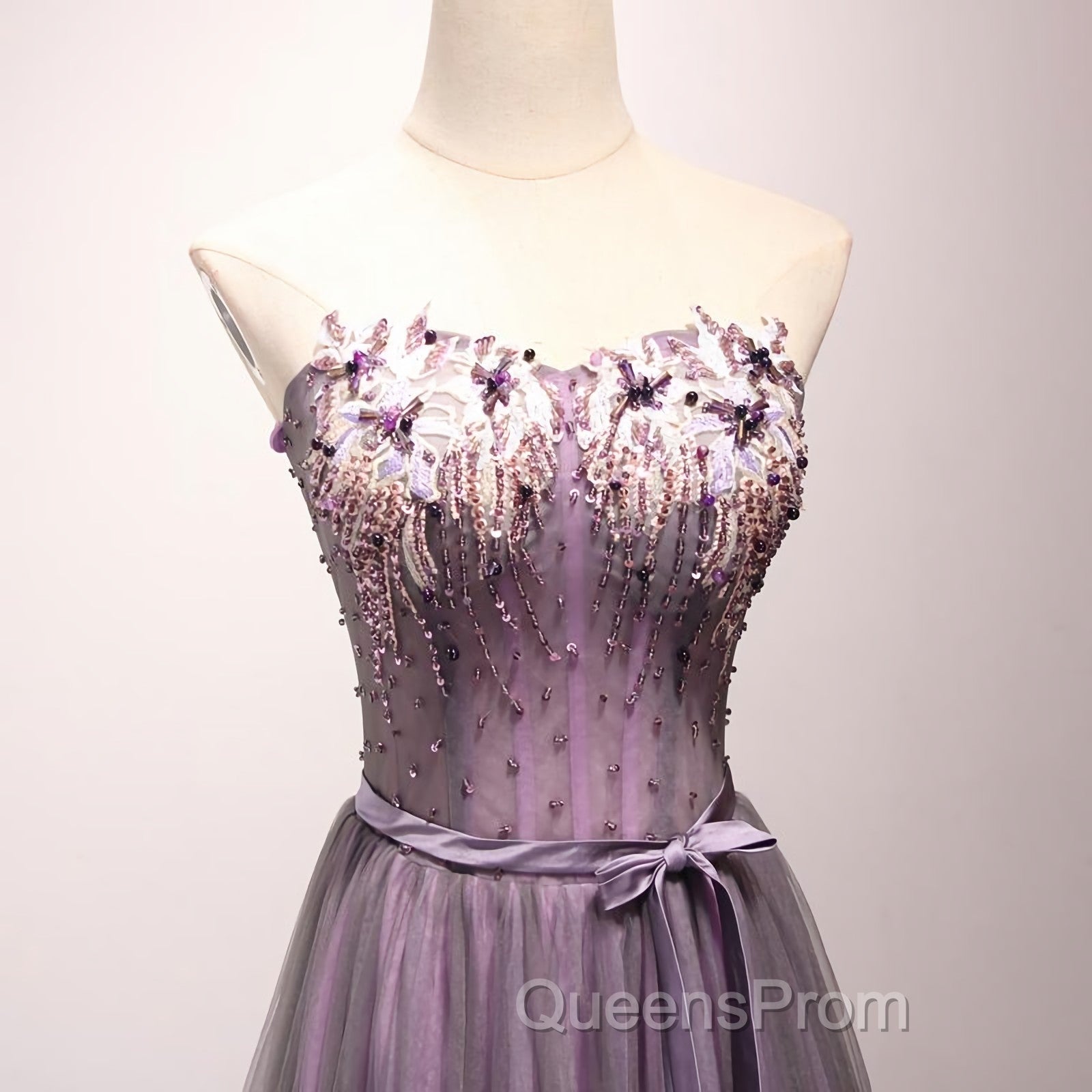 Pruple Tulle Sweetheart Neck Long Evening Prom Dress, Evening Dress