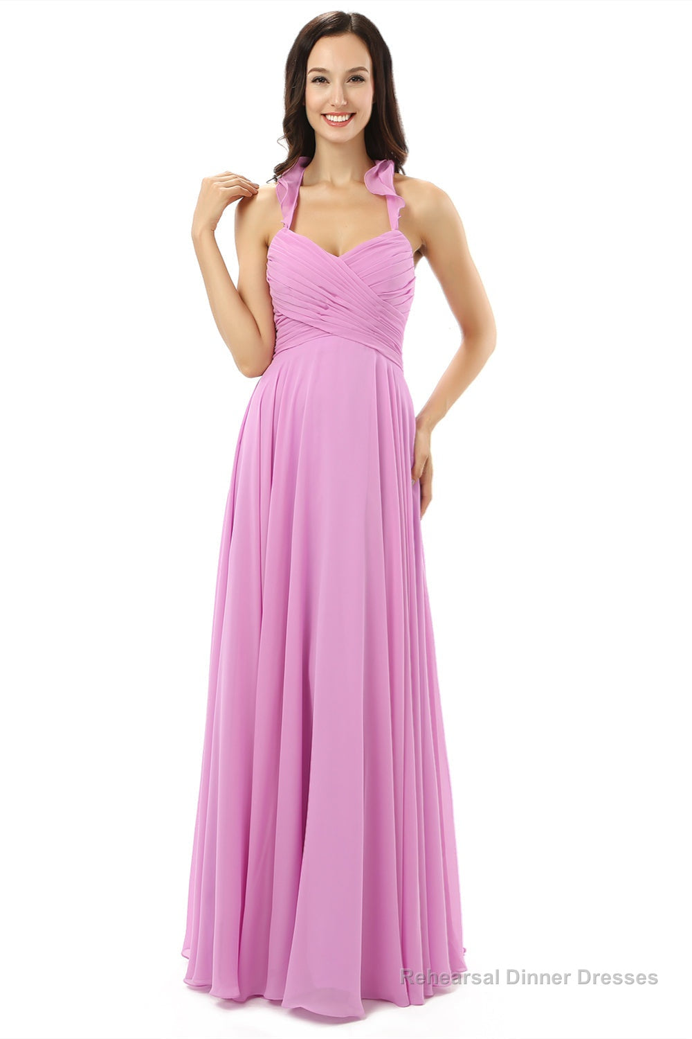 Purple Chiffon Halter Backless With Pleats Bridesmaid Dresses