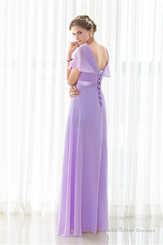 Purple Chiffon Off The Shoulder Long Bridesmaid Dresses