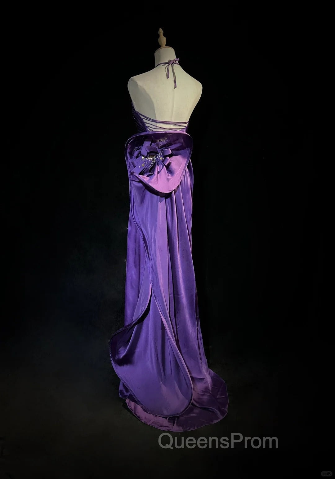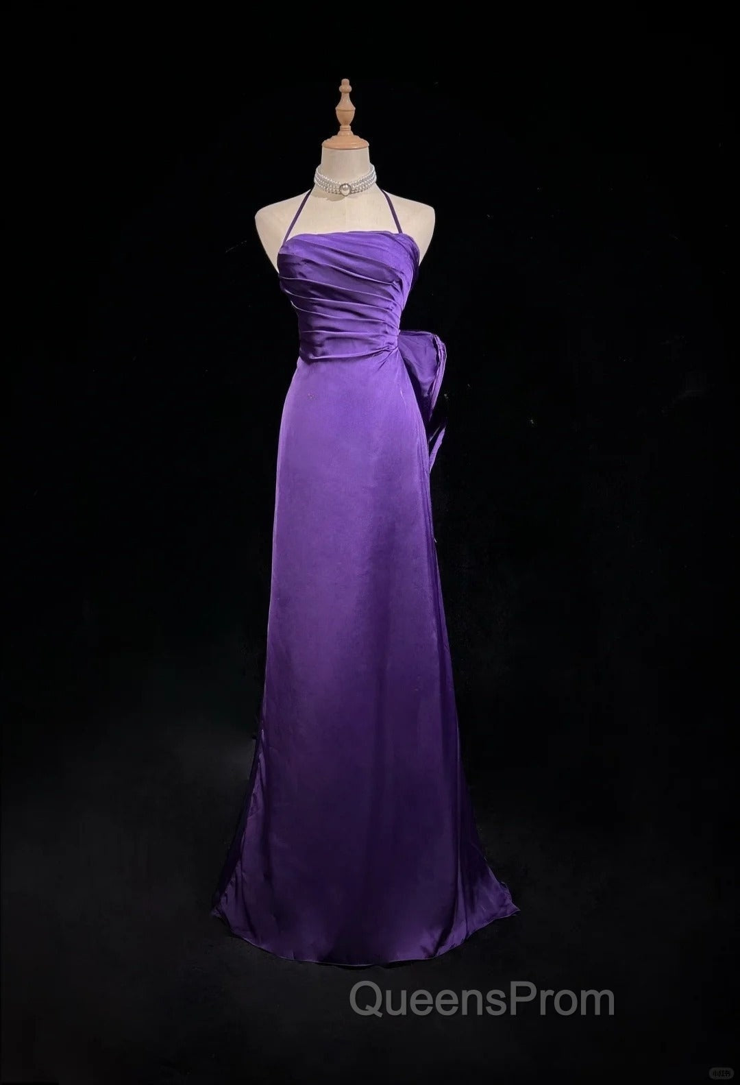 Purple Spaghetti Strap Satin Evening Prom Dress Backless Evening Gown