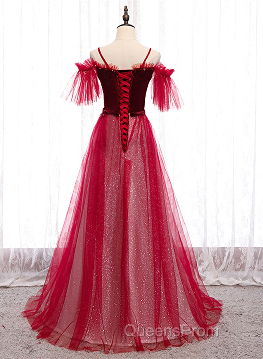 Red A-Line Floor Length Off Shoulder Long Evening Prom Dress, Red Long Evening Dress