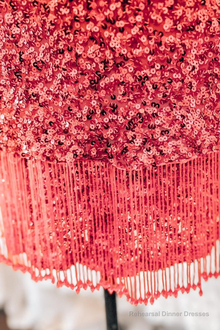 Red Lace-Up Sequins Sheath V Neck Homecoming Dress with Tassels