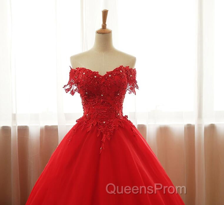 Red Off Shoulder Long Party Dress, A-Line Tulle Evening Dress Formal Gown