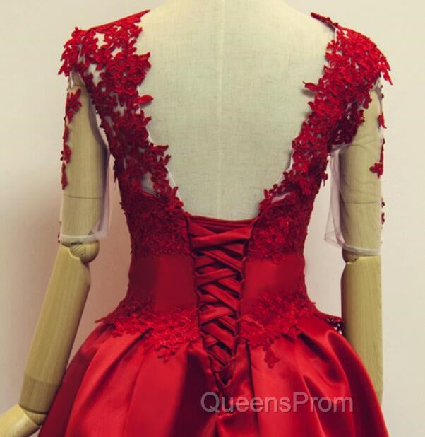 Red Short Sleeves Satin And Applique Homecoming Dress, Red Short Evening Prom Dress, Formal Dress