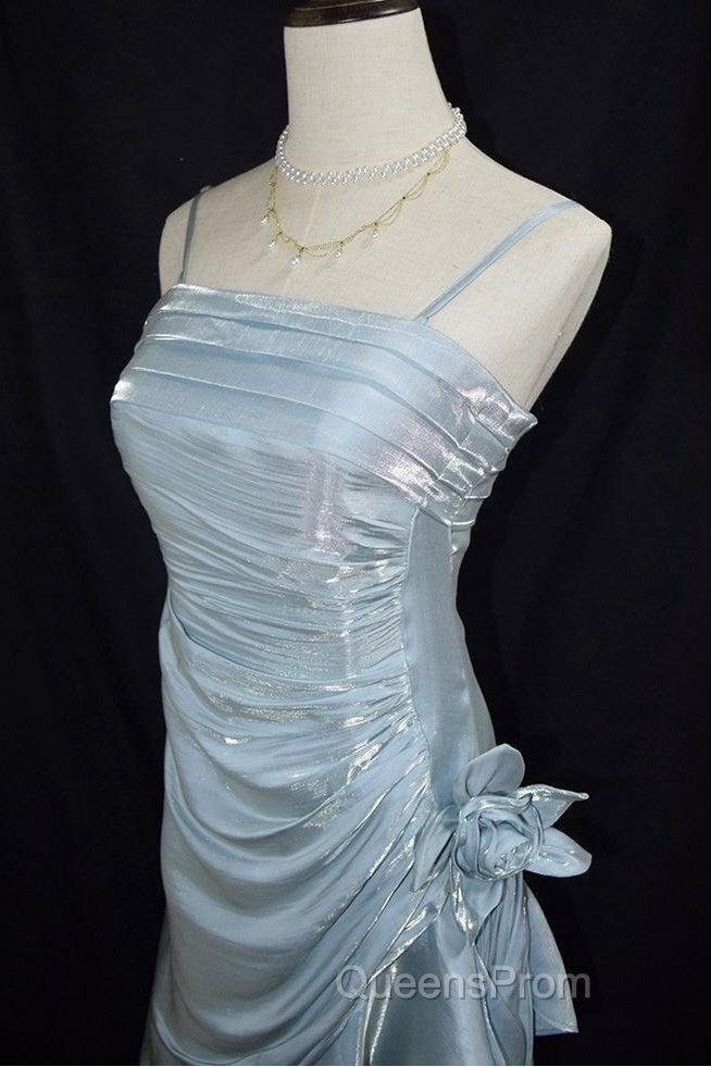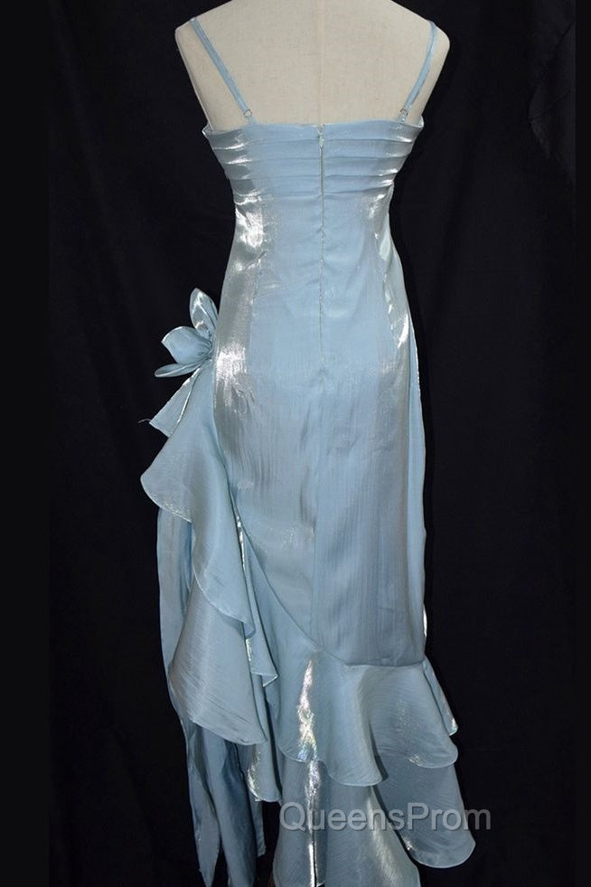 Retro Baby Blue Vintage Floral Dress Asymmetrical Hem Evening Prom Gown
