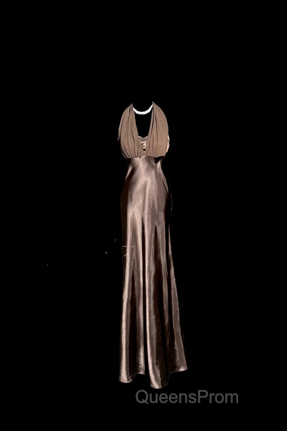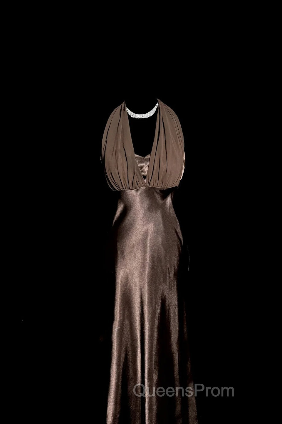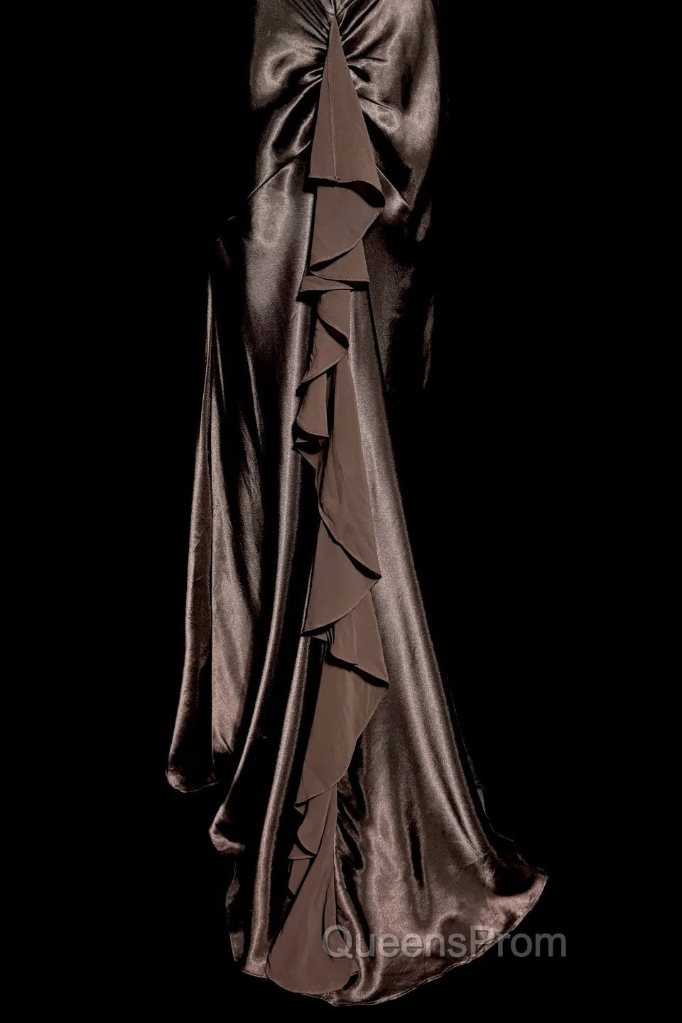 Retro Mermaid V Neckline Chiffon Brown Evening Dress Evening Prom Dress