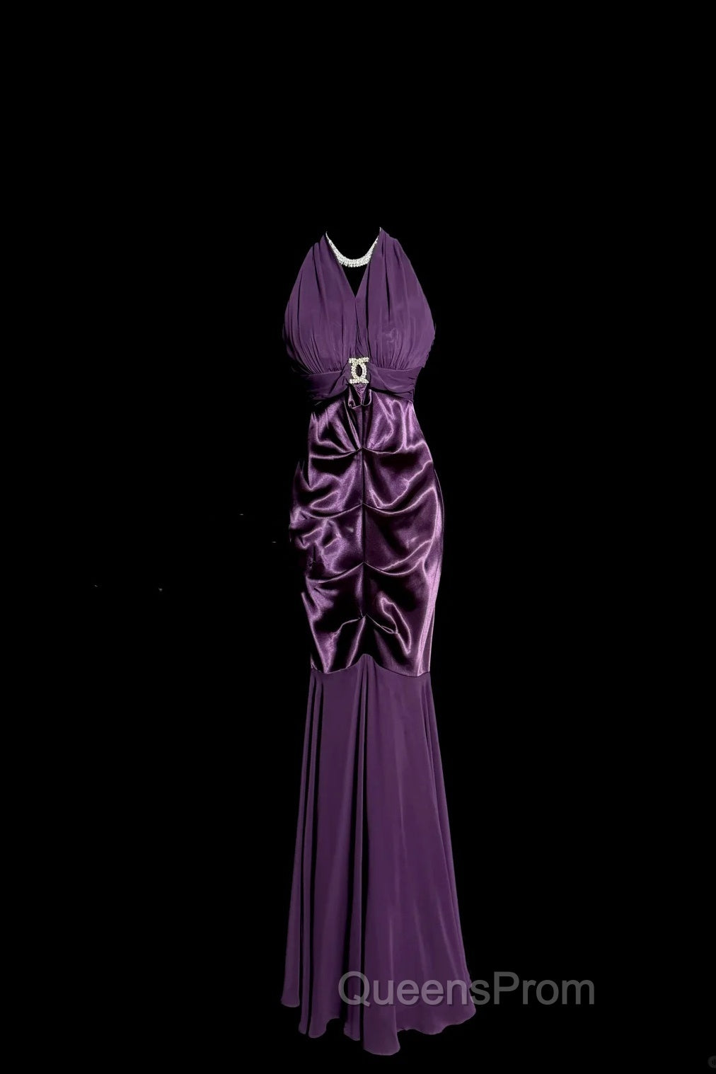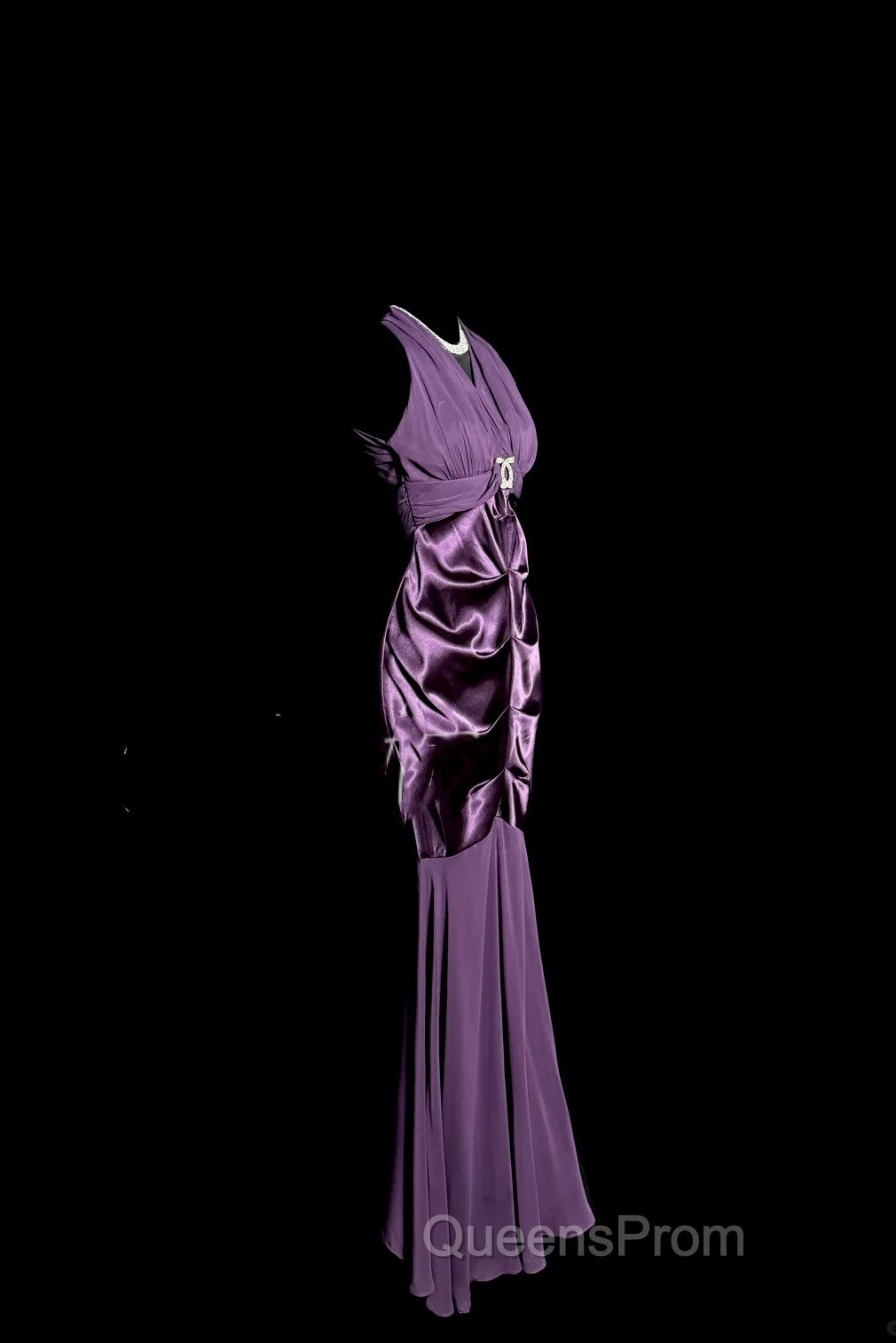 Retro Mermaid V Neckline Chiffon Grape Evening Dress Evening Prom Dress