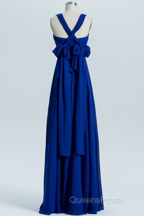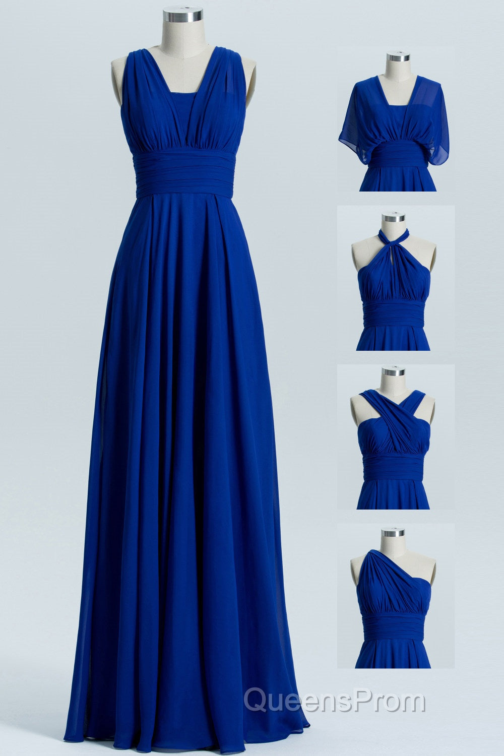 Royal Blue A-line Chiffon Long Convertible Bridesmaid Dress