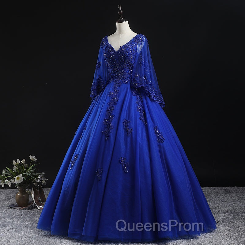 Royal Blue Ball Gown Lace Applique Quinceanera Dress, Tulle Floor Length Sweet 16 Dress