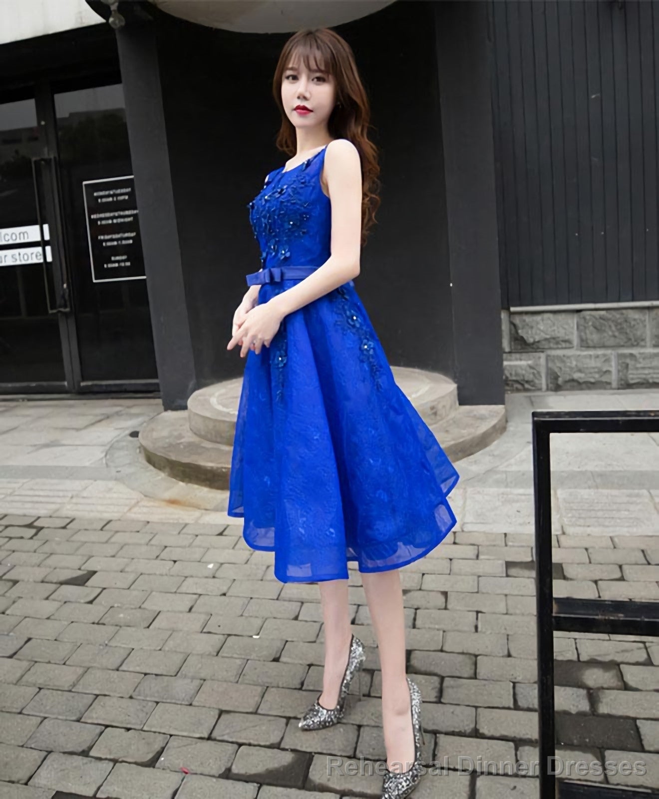 Royal Blue Lace A Line Short Prom Dress Evening Dress