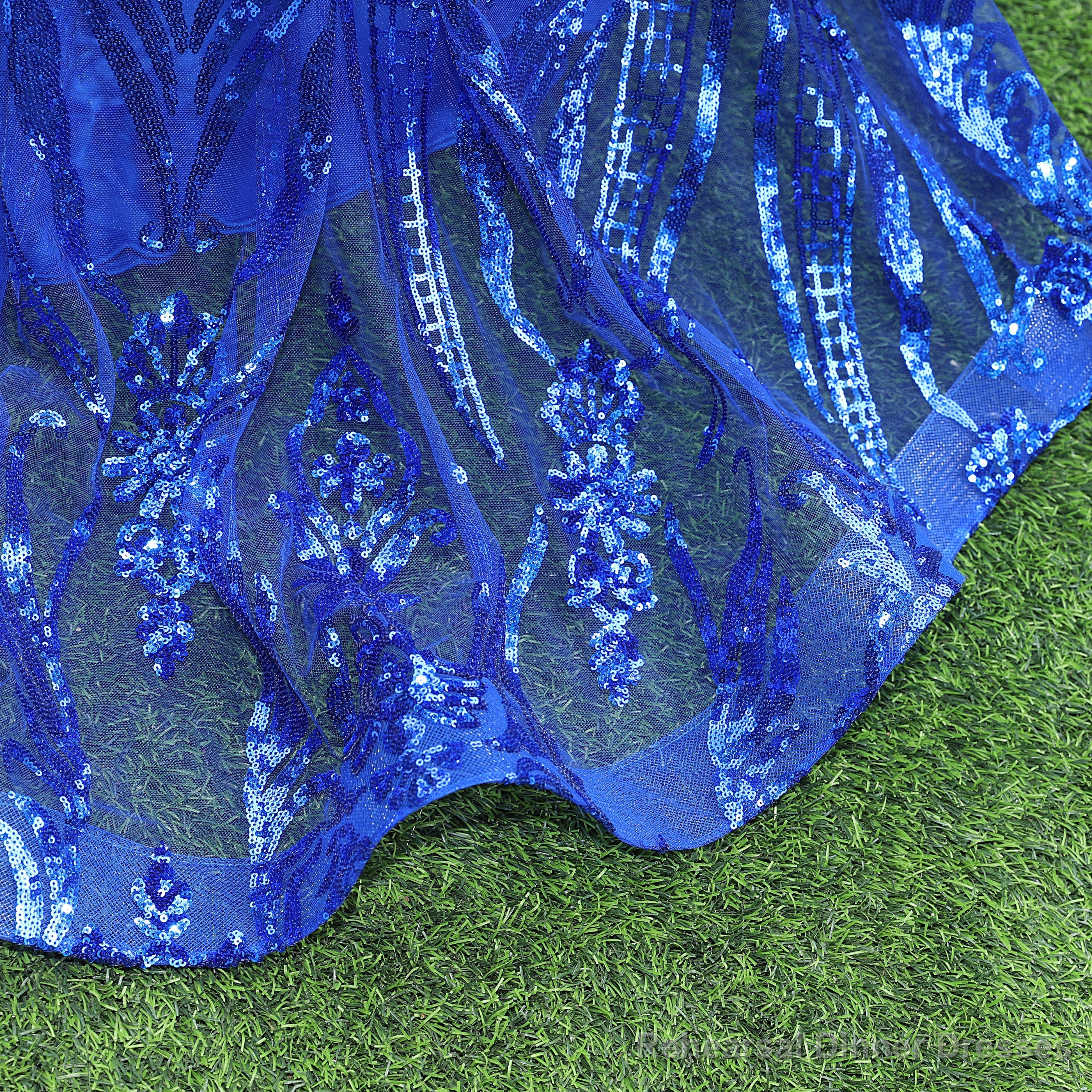 Royal Blue Prom Dresses Sequins V Neck Mermaid Women Evening Dresses Sleeveless