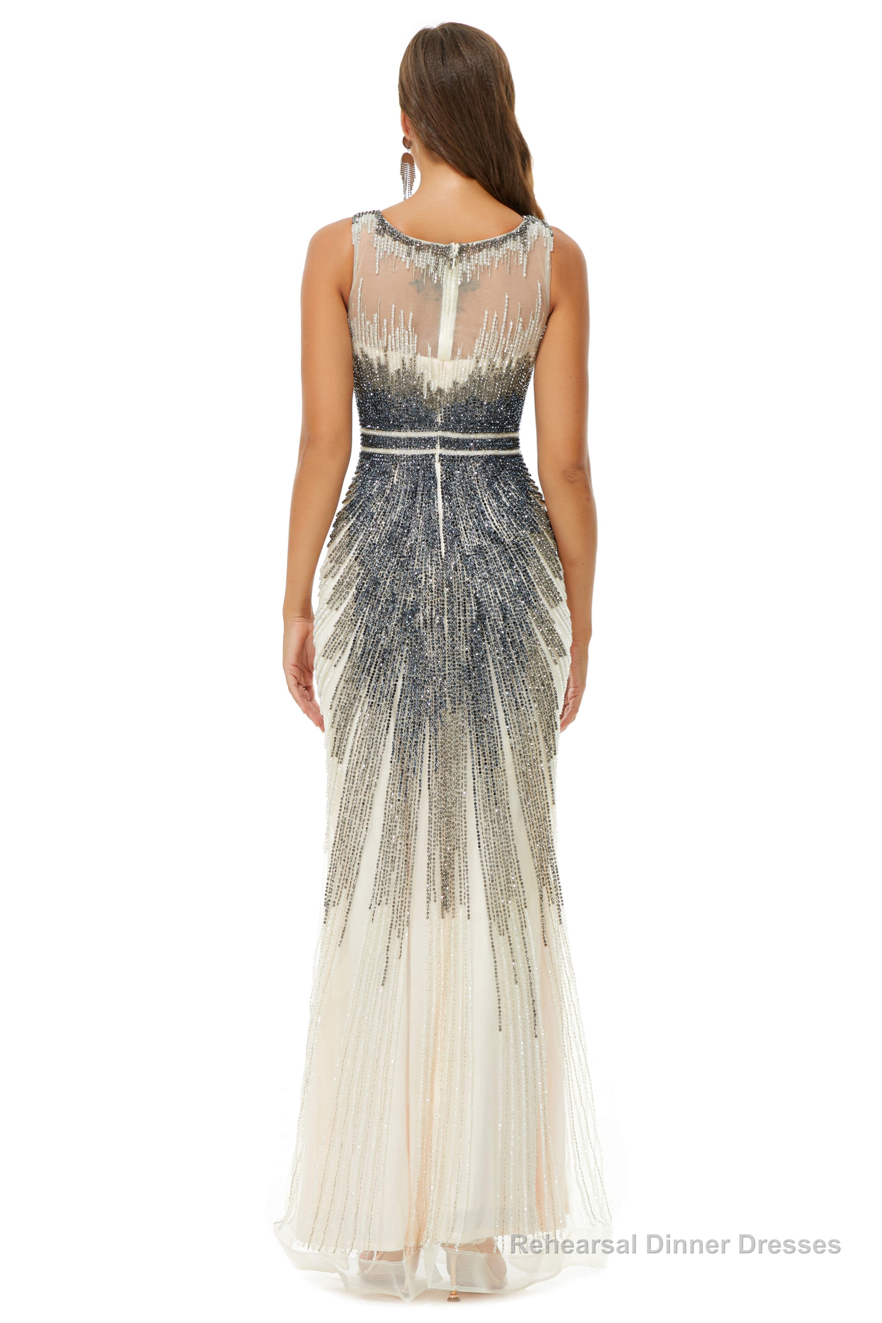 Sequin Bead Sleeveless High Neck Mermaid Prom Dresses