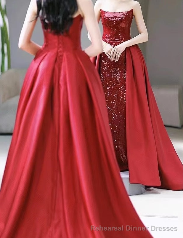 Sequin Mermaid Strapless Sleeveless Party Dress Red Long Prom Dresses