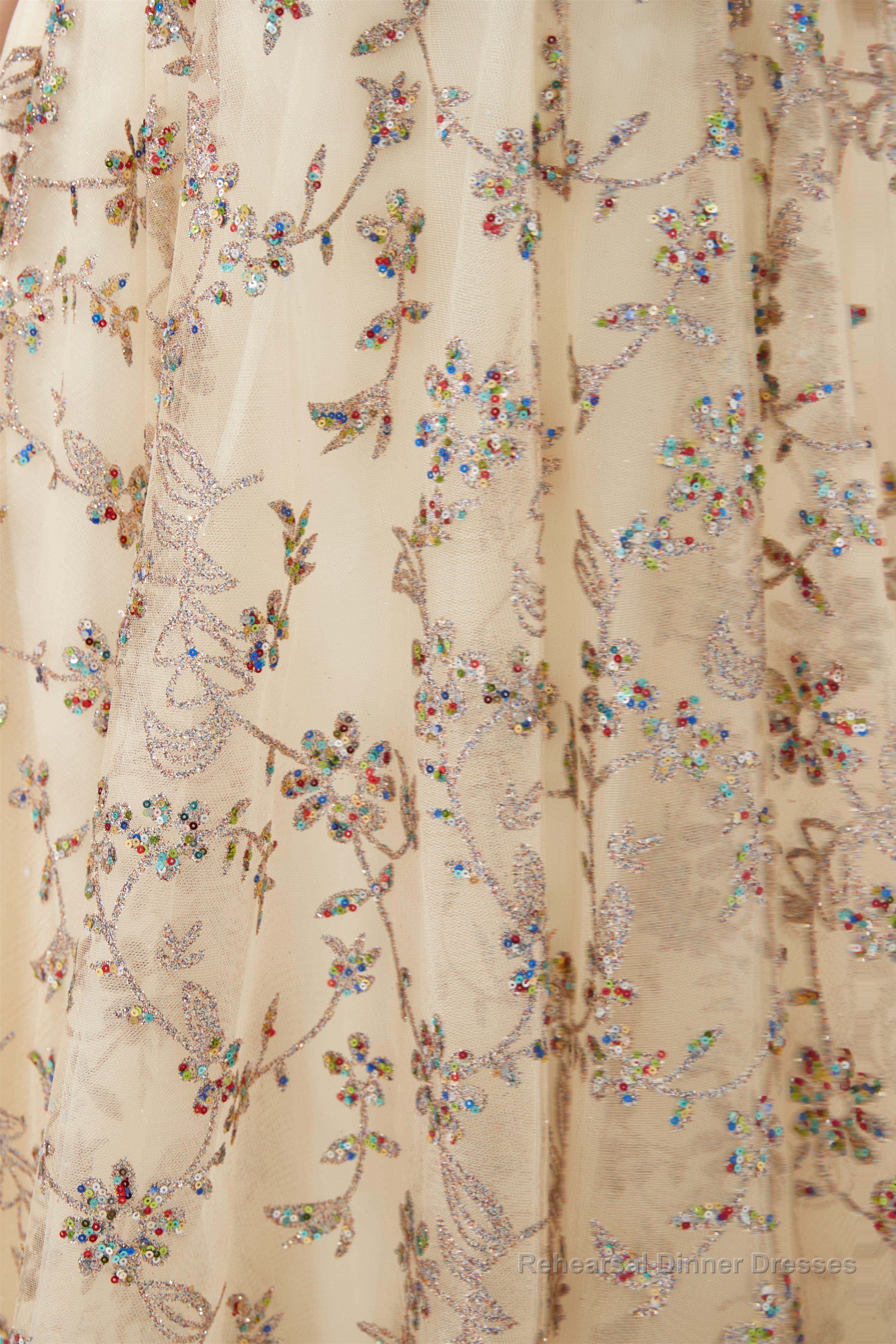 Sequined V Neck A Line Off Shoulder Strap Long Floor Length Prom Dresses