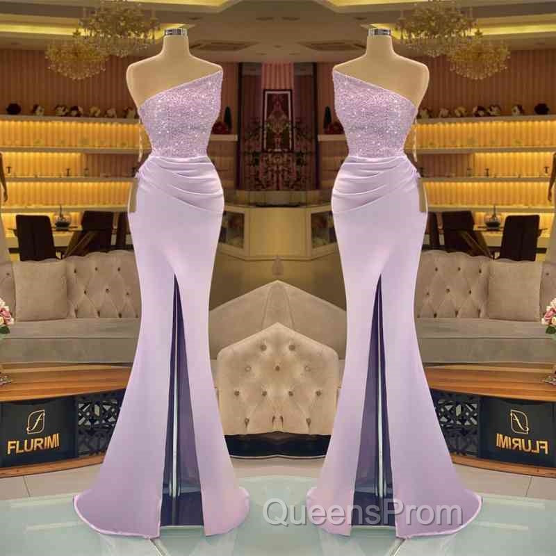 Sequins Formal Dress Light Purple Mermaid Evening Prom Dress Long Slit Strapless