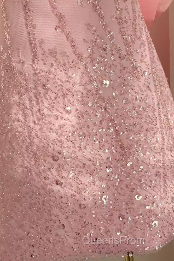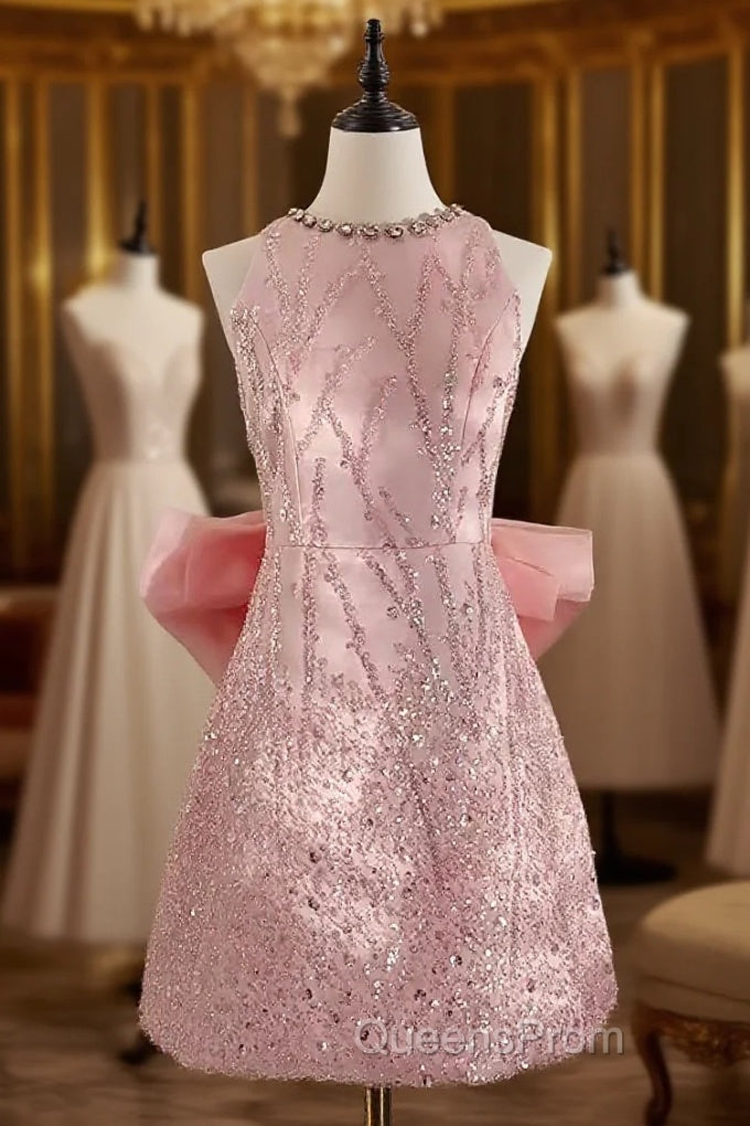 Sexy A Line Scoop Pink Sequin Travel Vacation Dress Short Birthday Dress