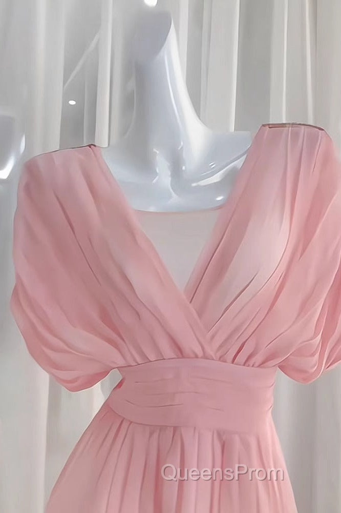Sexy A Line V Neckline Ruffled Pink Chiffon Beach Dress WomenS Vacation Dress