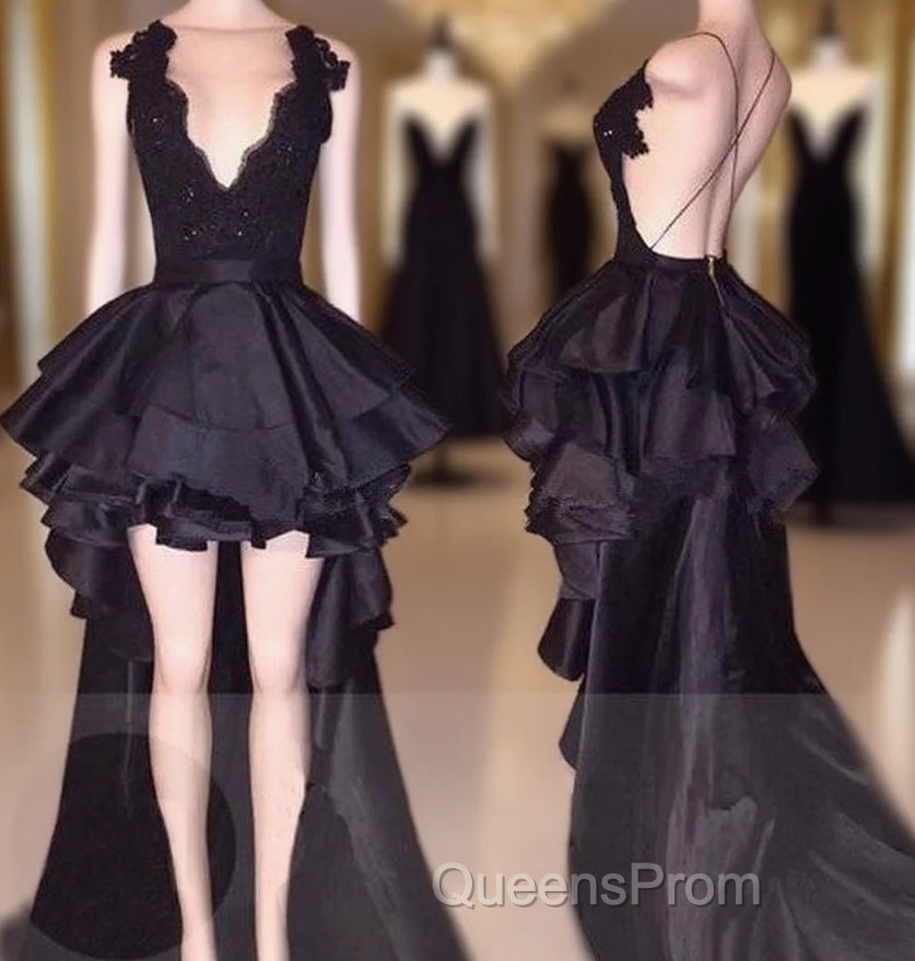 Sexy Layered Hi-Lo Lace Black Evening Prom Dress