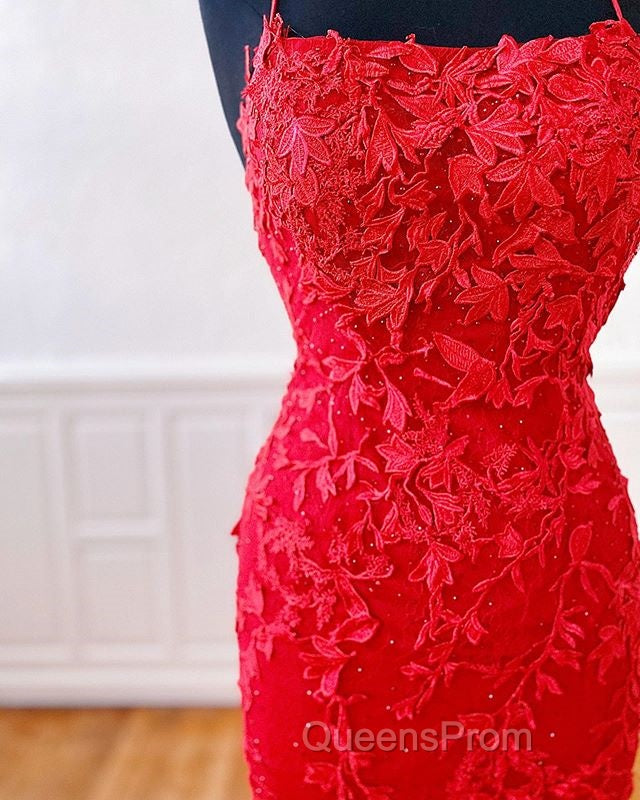 Sexy Long Lace Red Evening Prom Dress Open Back