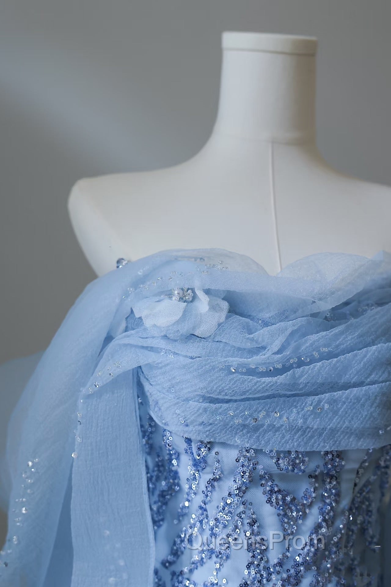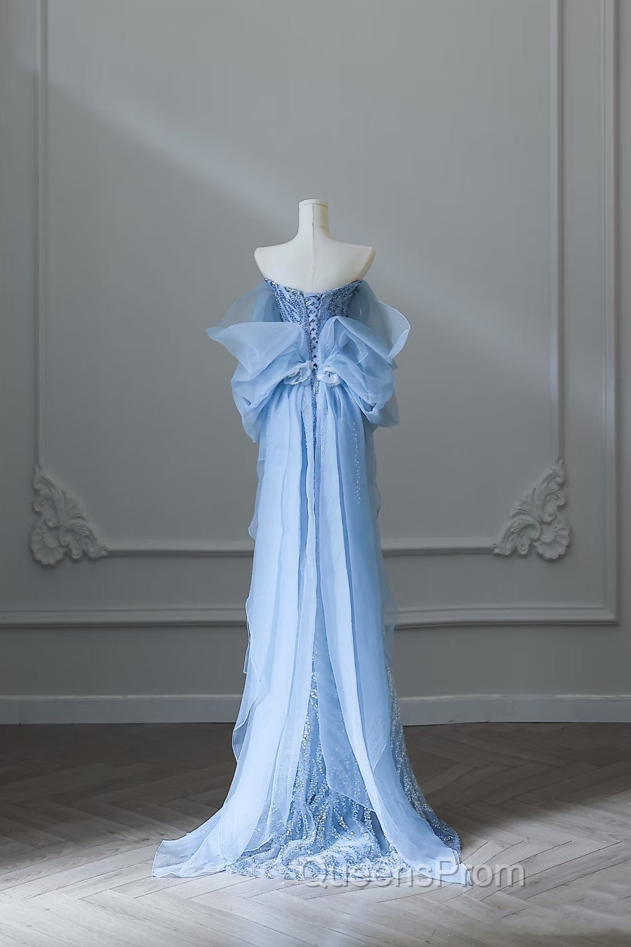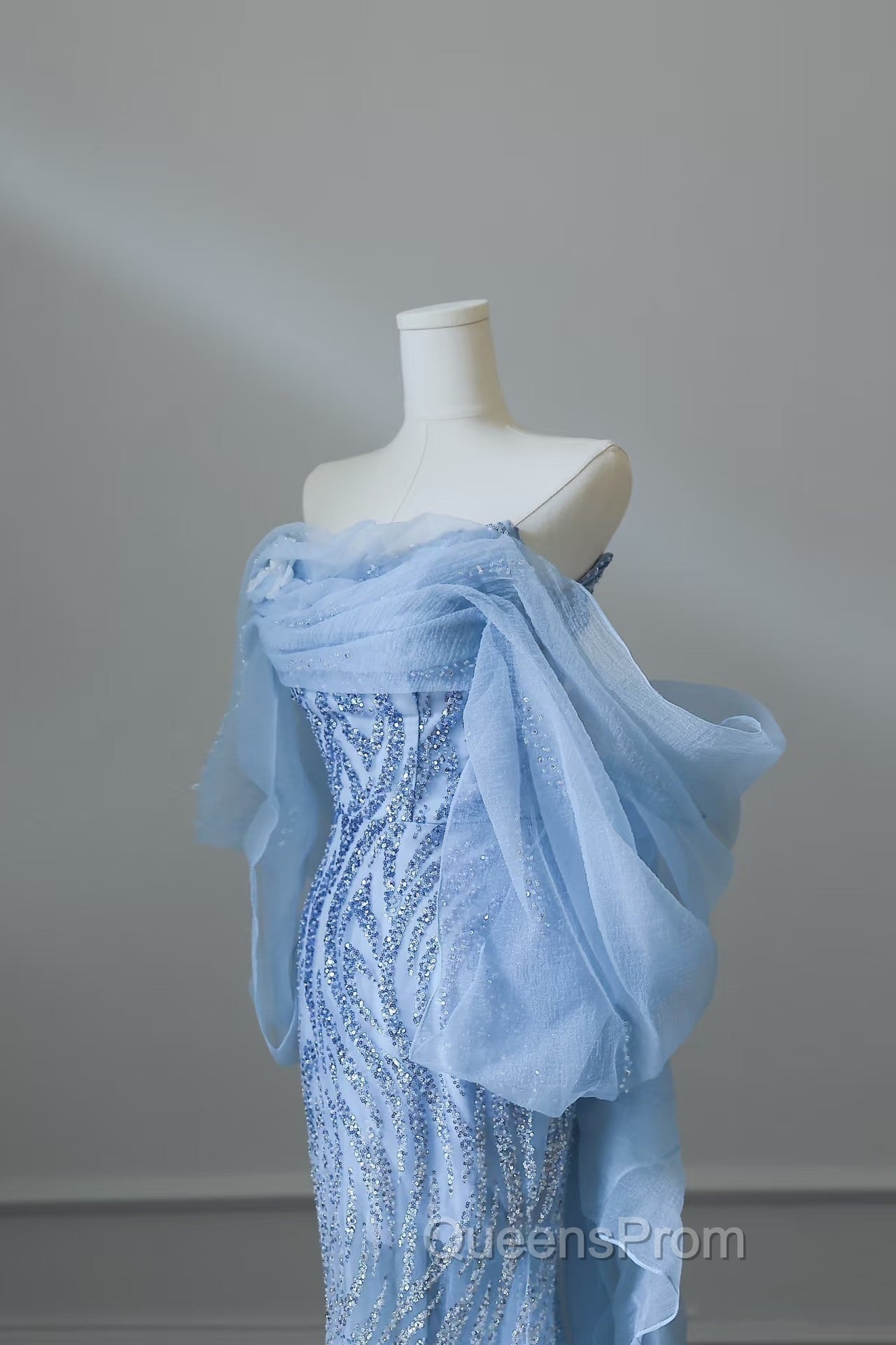 Sexy Mermaid Off The Shoulder Blue Sequin Long Evening Prom Dress Evening Gowns