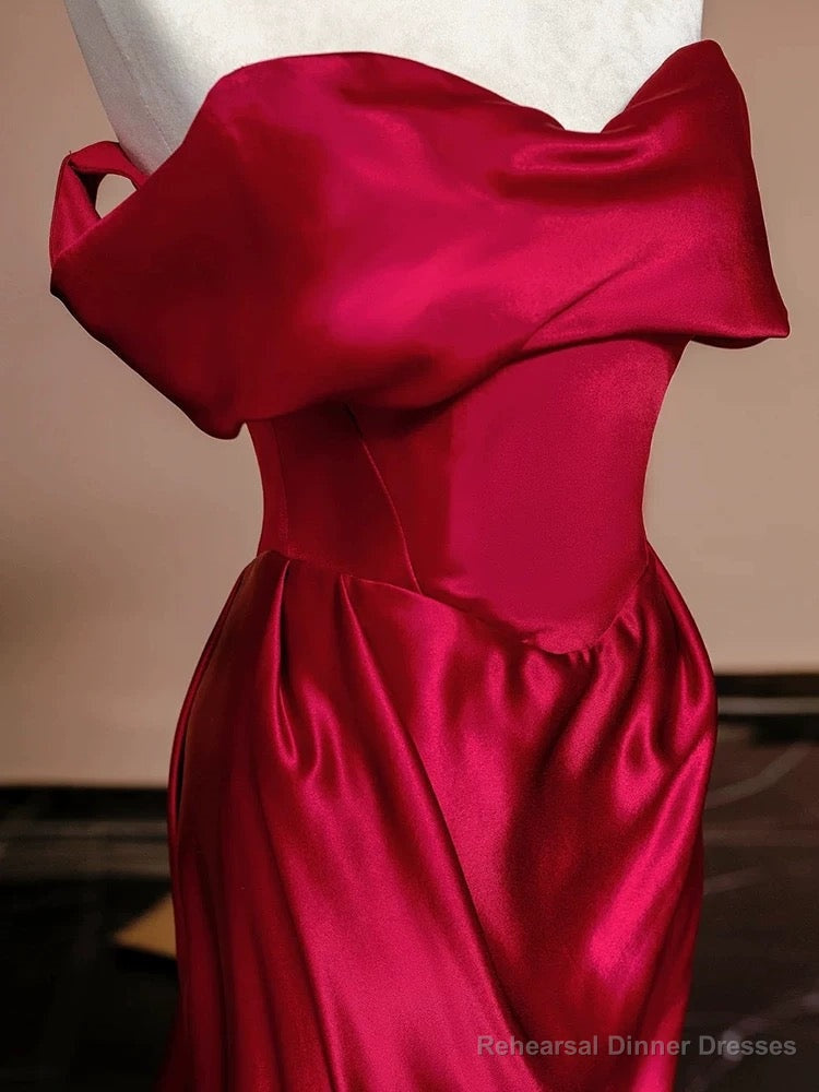 Sexy Mermaid Off The Shoulder Satin Red Floor Length Evening Dress Prom Dresses