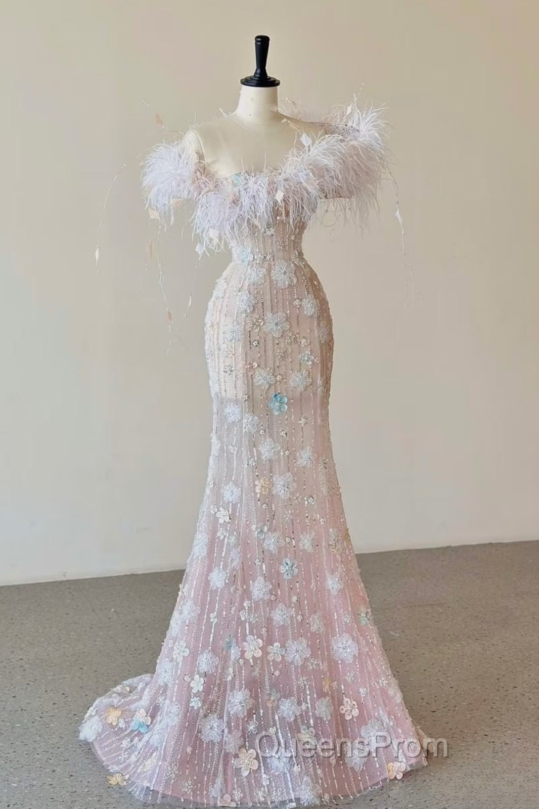 Sexy Mermaid Sweetheart Pink Lace Long Floral Evening Prom Dress Party Dress
