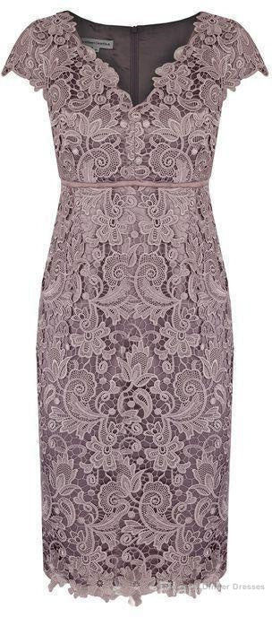 Sheath V Neck Cap Sleeves Lace Empire Mother Of The Bride Dress With Sash
