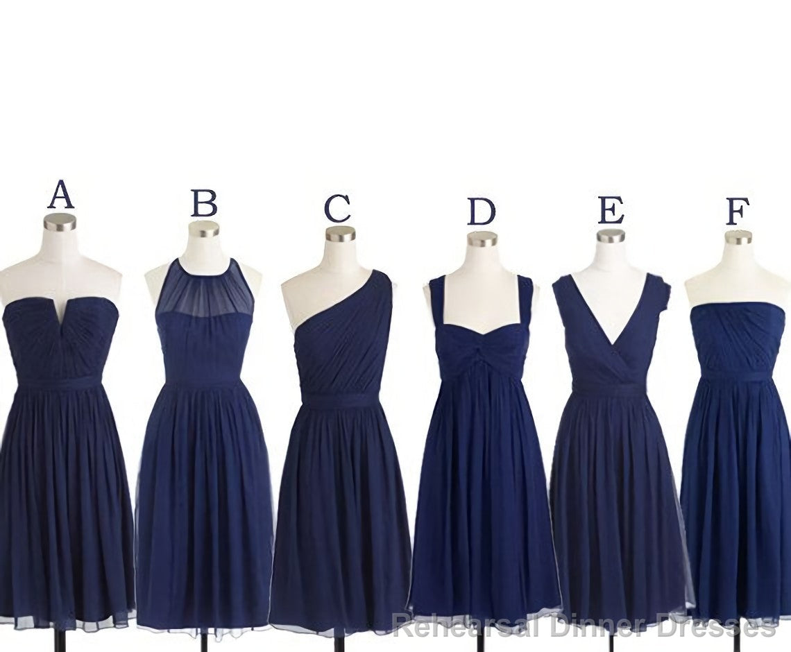 Short Navy Blue Chiffon Mismatch Maid Of Honor Girls Group In Knee Length Simple Prom Dresses