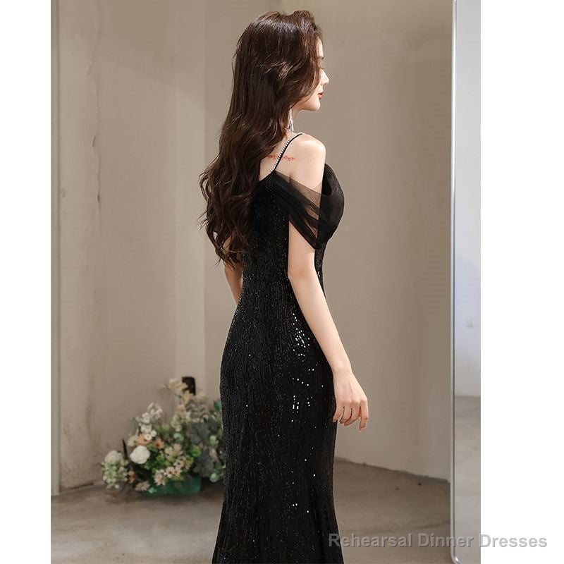 Short-Sleeve Cold Shoulder Plain Sequin Ruffle Slit Mesh A-Line Evening Gown