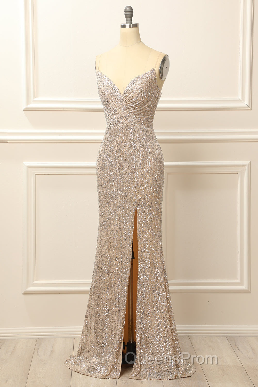 Silver Sequins Long Evening Prom Dress with Slit