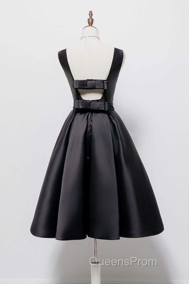 Simple A-Line Satin Black Short Evening Prom Dress, Black Homecoming Dress