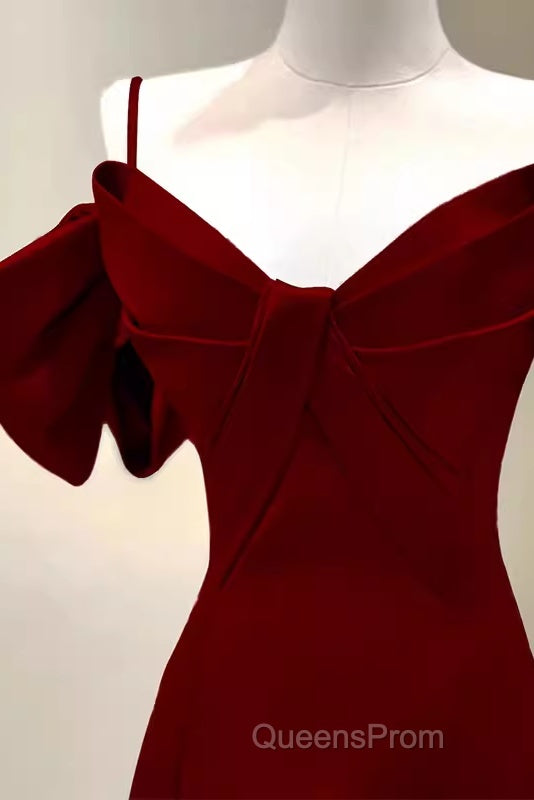 Simple A Line Straps Red Satin Long Evening Prom Dress