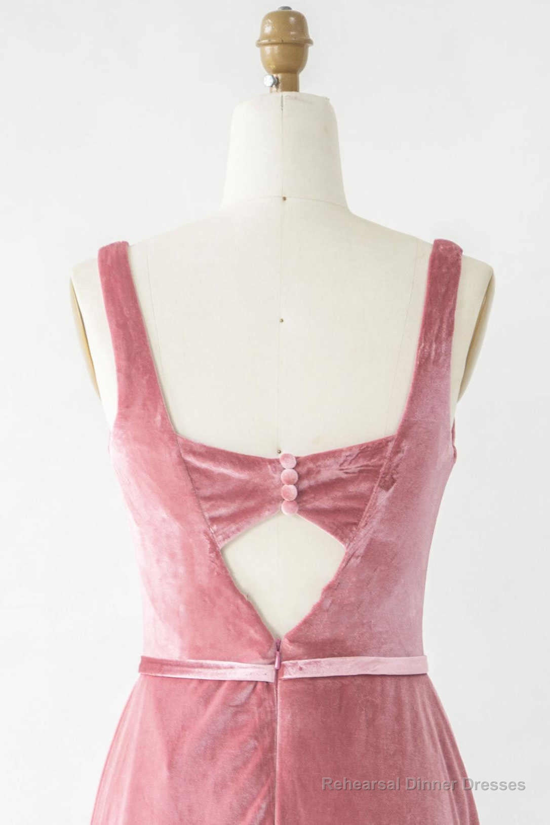 Simple Boat Neck Velvet Long Bridesmaid Dress