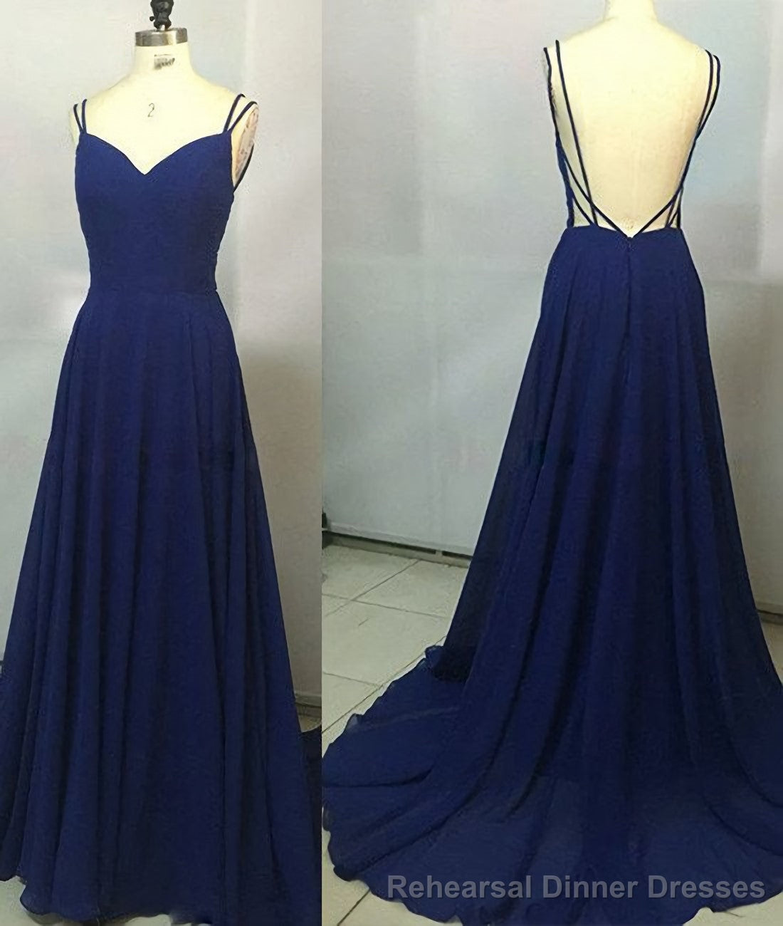 Simple A Line Spaghetti Straps Backless Royal Blue Long Prom Dresses